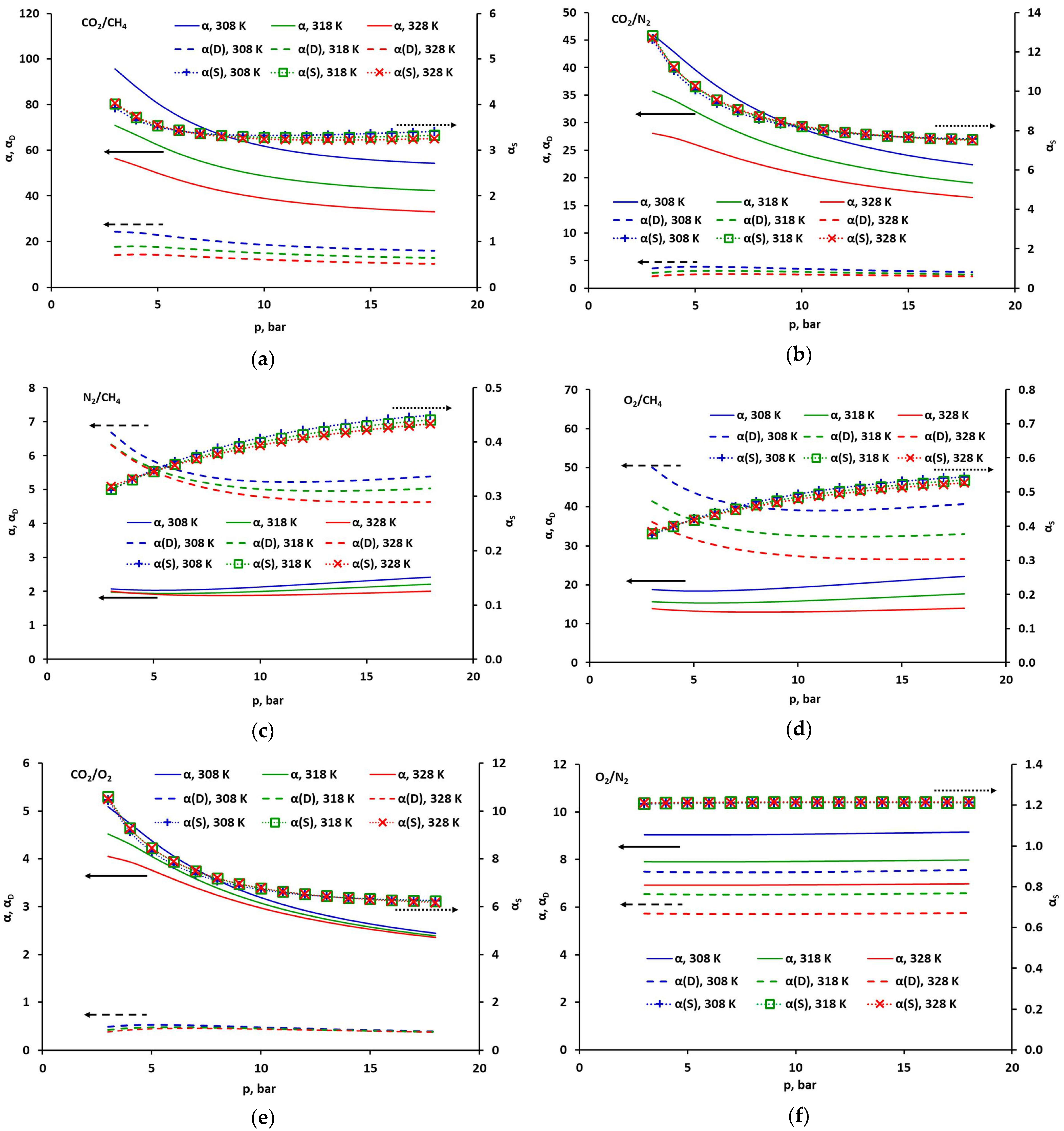 2.4. Selectivity of CO2, CH4, O2 and N2