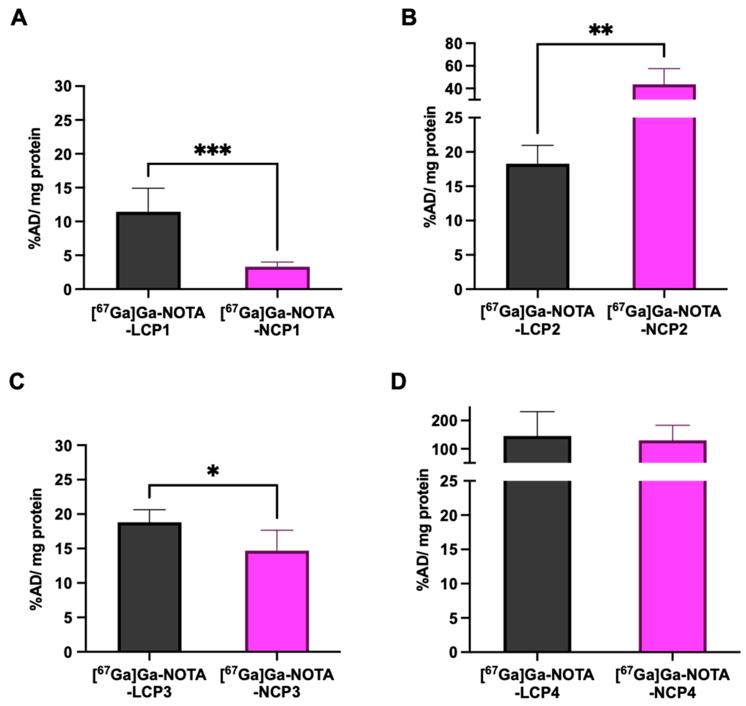 2.4. In Vitro Cellular Uptake of [67Ga]Ga-NOTA-Peptides
