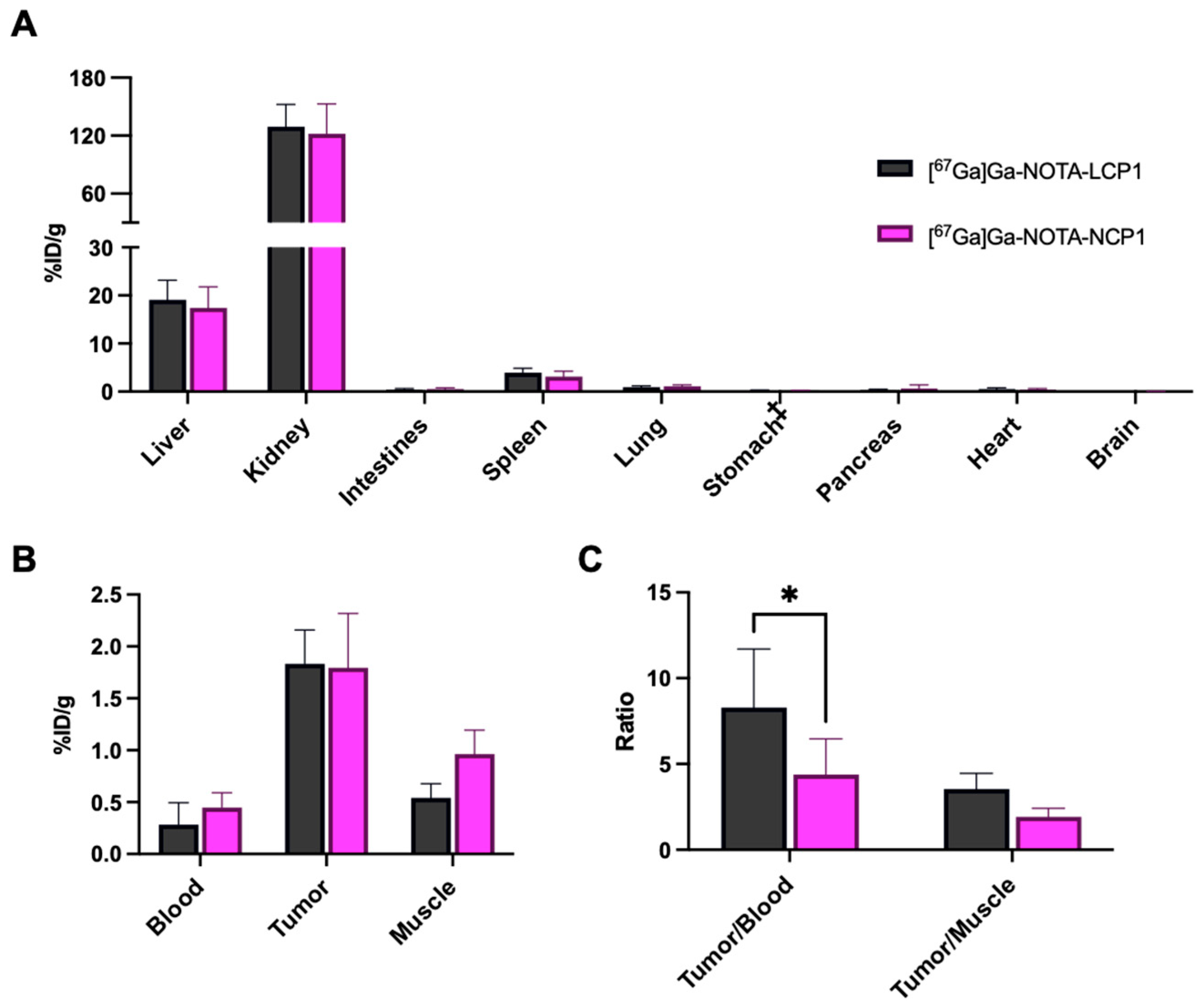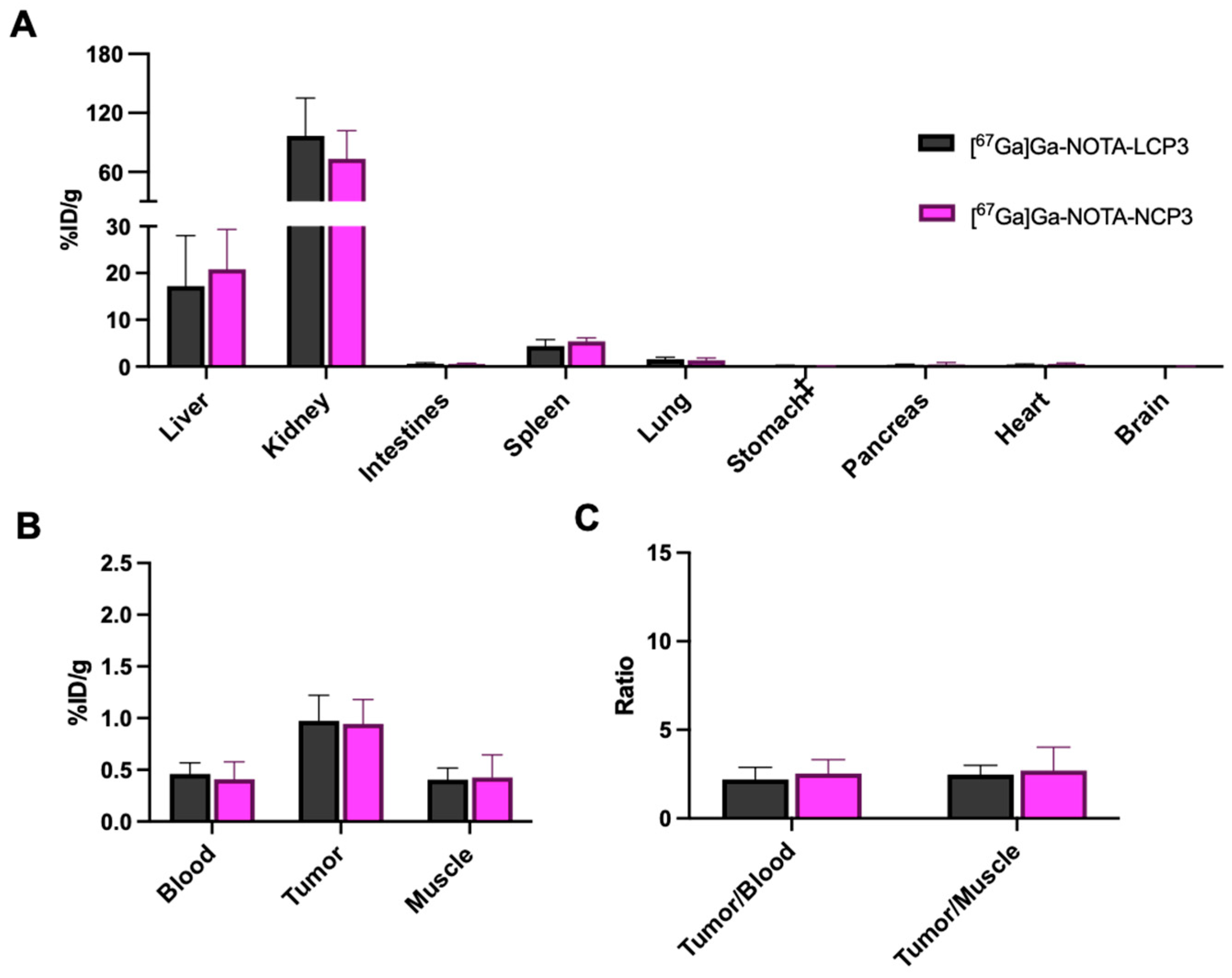 2.5. In Vivo Biodistribution of [67Ga]Ga-NOTA-Peptides