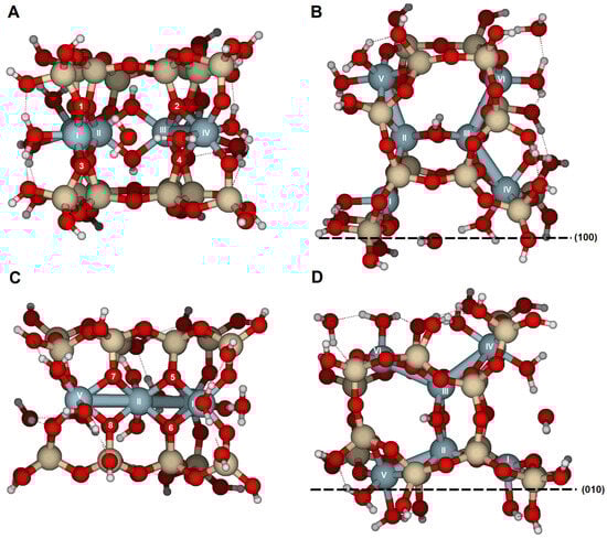 Figure 1A) in terms of atom distribution. In {110} faces, two hydroxyl groups are exposed at the solid/solution interface. They bond with Al(IX) and Al(X) (