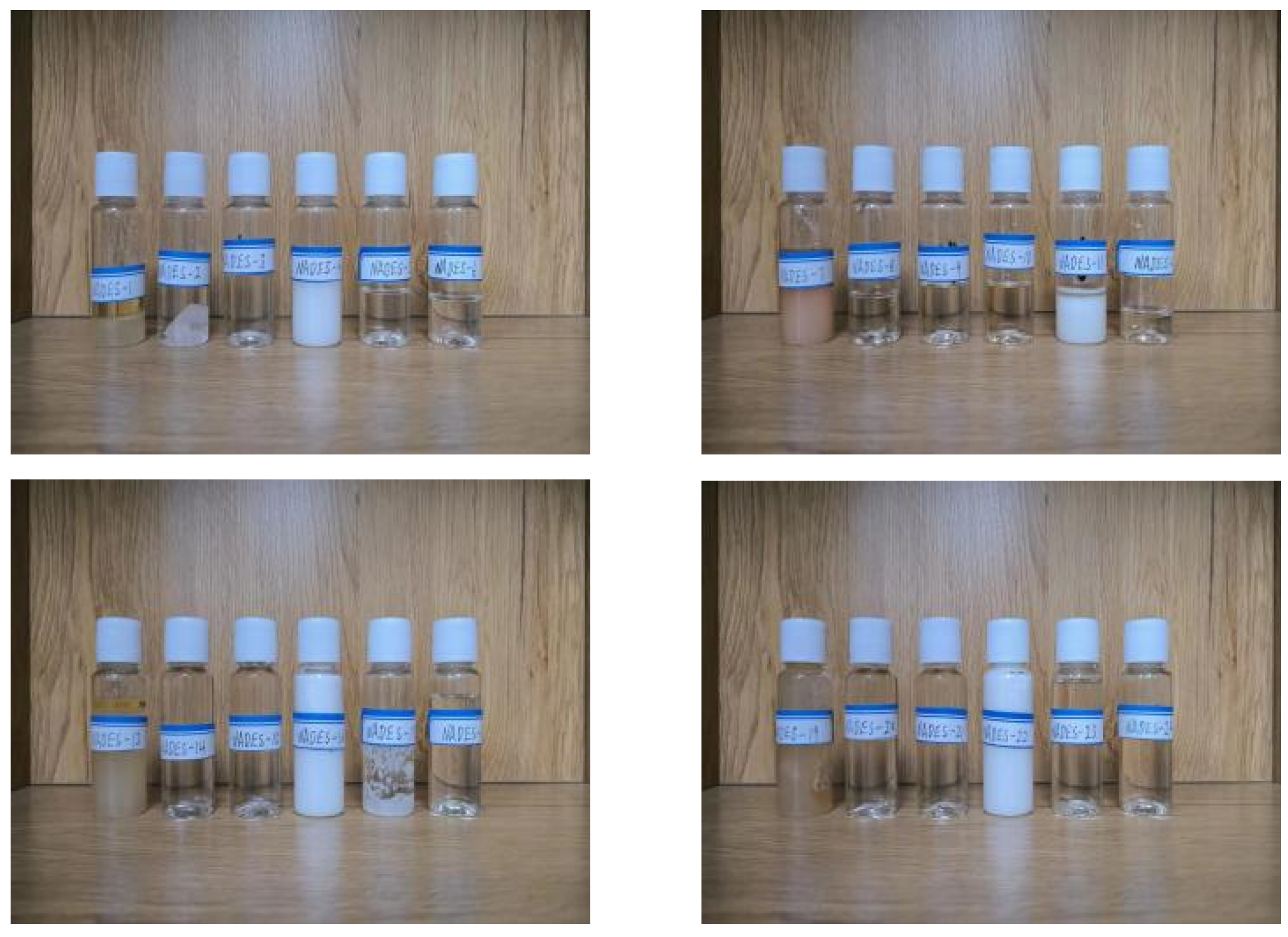 The prepared NADES solutions were stored in sealed containers under light-protected conditions at 4 °C. The stability of each formulation was monitored by observing sedimentation or phase separation at intervals of 30, 60, and 100 days.