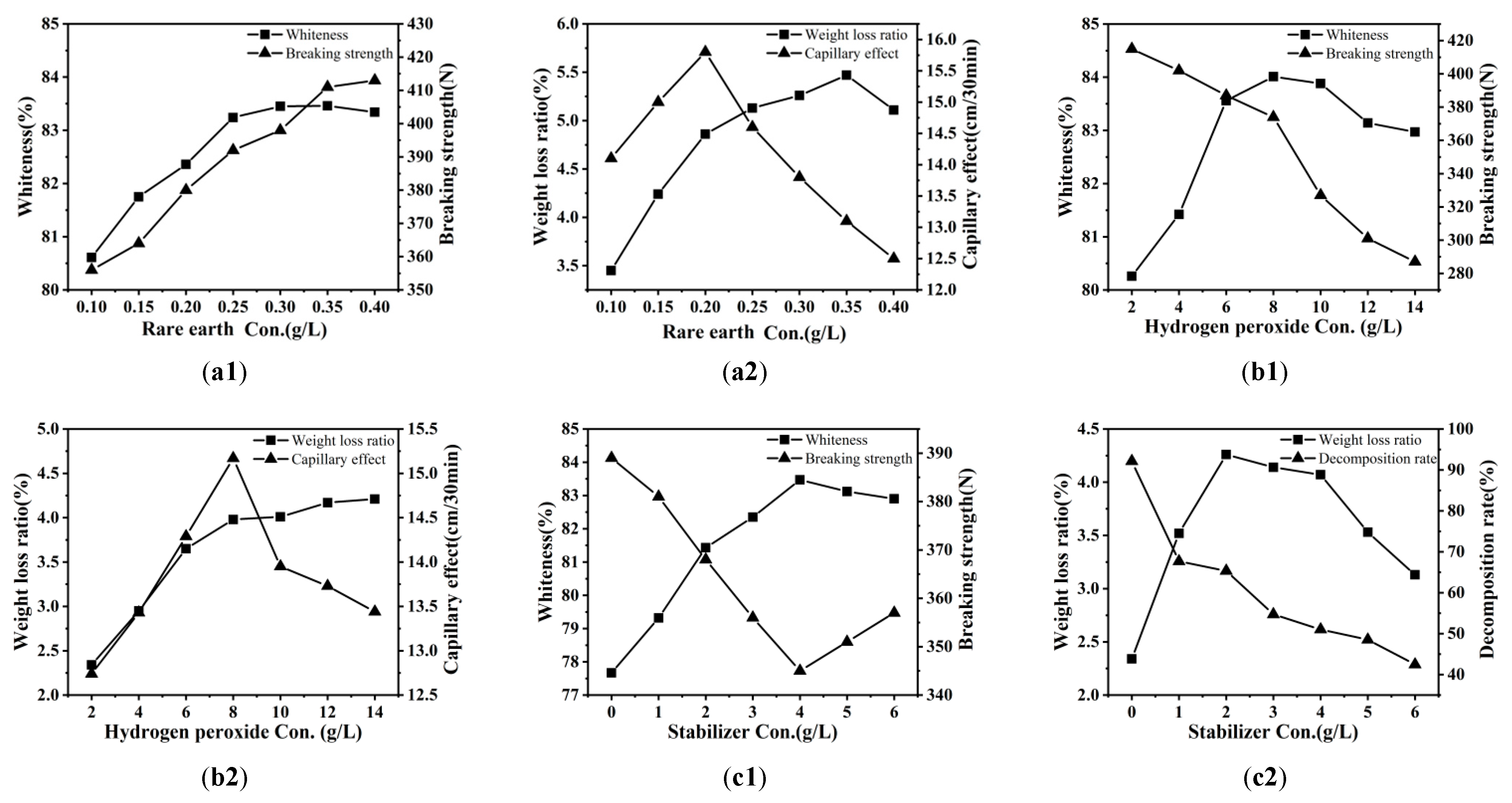 Chicago/Turabian StyleLiu, Jie, Wenqi Jiang, Chun Lv, Lingfang Sun, and Yongjie Zheng. 2025. "Research on Improving Pretreatment Process of Banana Fiber Fabric with Rare Earth" Molecules 30, no. 23: 4535. https://doi.org/10.3390/molecules30234535