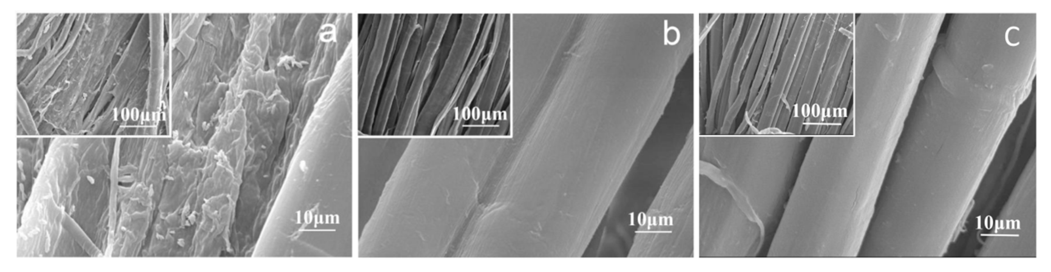 - Wang, C.; Wang, C.; Zhou, T. Study on degumming of banana stalk fiber by ultrasonic method. J. Guangdong Ins. Petro. Chem. Eng. 2015, 25, 19–22. [Google Scholar]