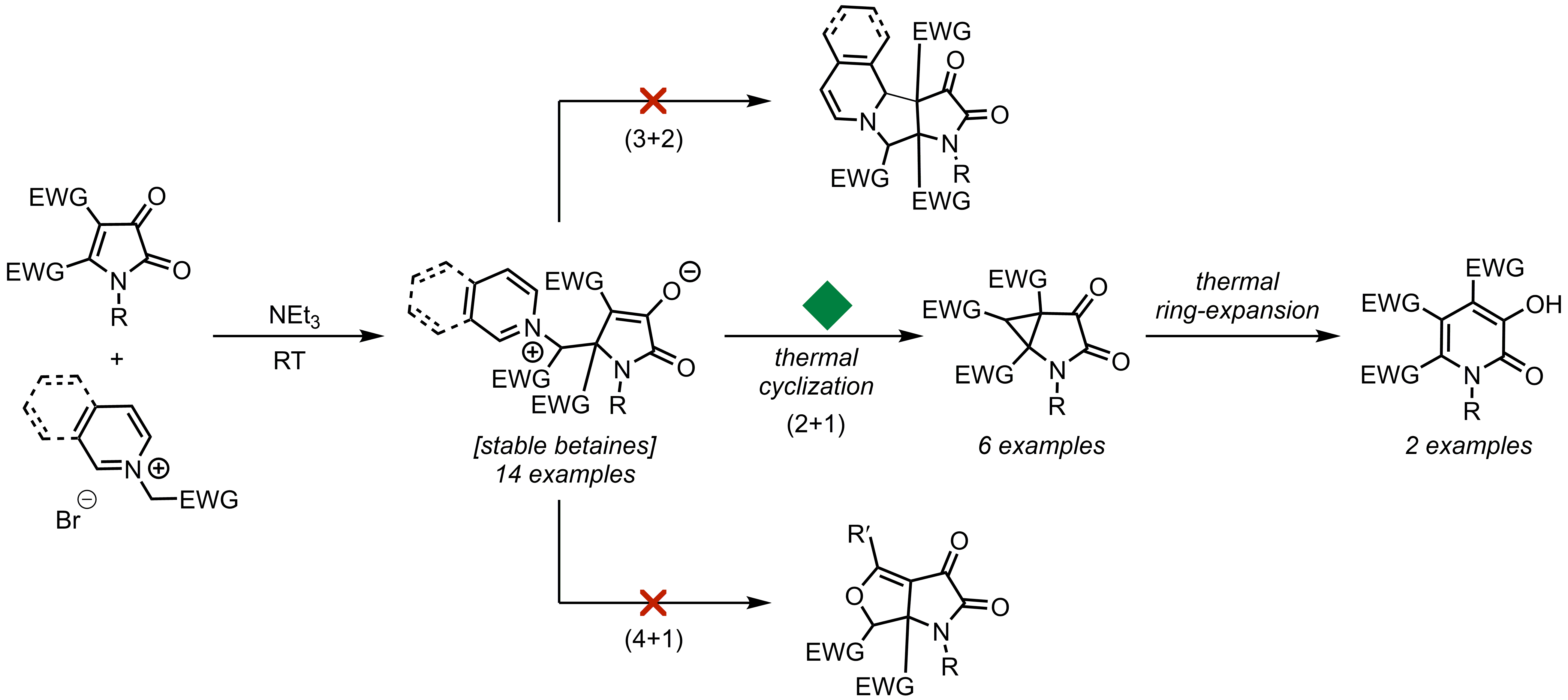 General Procedure B: To a V-vial containing a magnetic stir bar and betaine 3 (1 equiv.), dry chlorobenzene (5 mL per 1 mmol of 3) is added. The vial is connected to a Vigreux column (serving as a condenser) and placed in a preheated-to-140 °C metal heating block. The resulting mixture is stirred at 140 °C until complete dissolution of the starting betaine 3 (5–50 min depending on the betaine used). The solution is cooled, and cyclopropanes 4 are isolated by flash-column chromatography (loaded directly on a column in PhCl) or crystallization.
