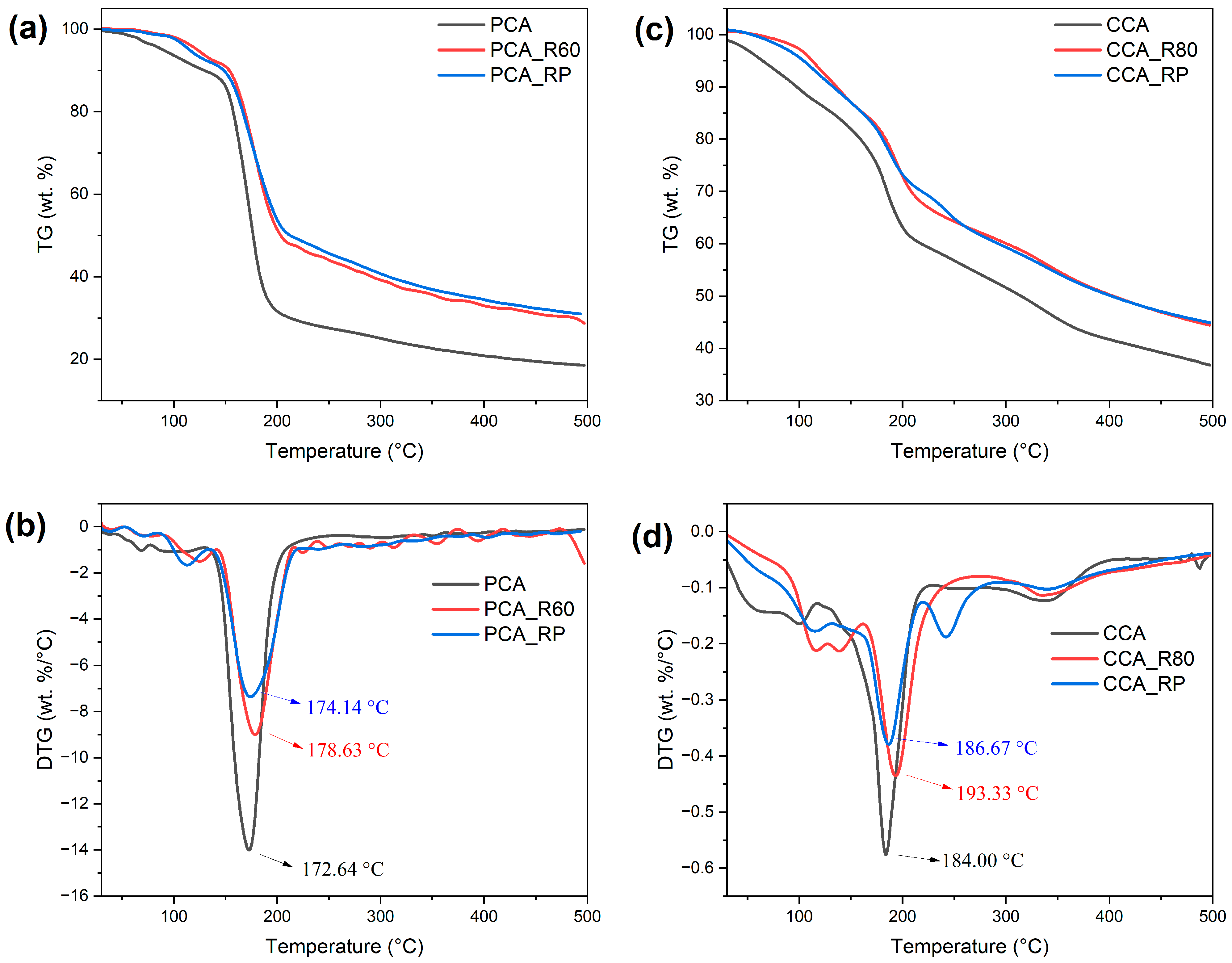 3.5. Thermogravimetric Analysis (TG) and Its Derivative (DTG)