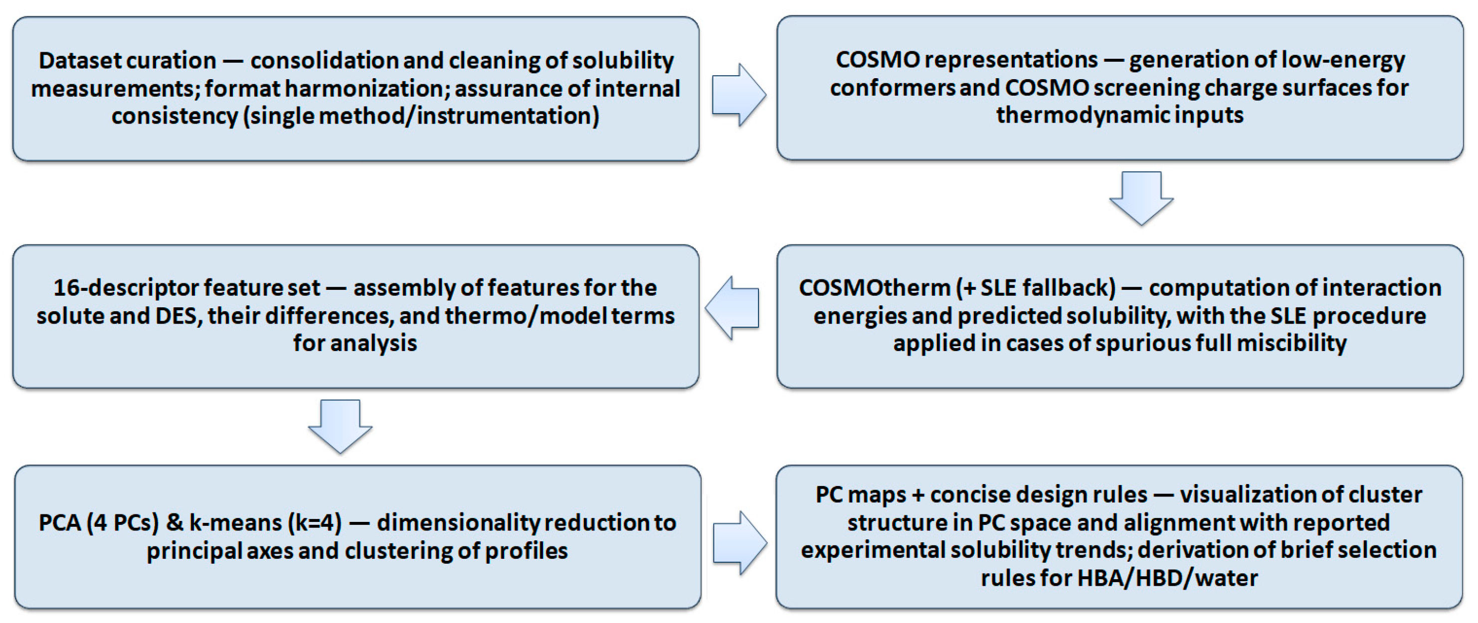 Cysewski, P.; Przybyłek, M.; Jeliński, T. Data-Driven Classification of Solubility Space in Deep Eutectic Solvents: Deciphering Driving Forces Using PCA and K-Means Clustering. Molecules 2025, 30, 4563. https://doi.org/10.3390/molecules30234563