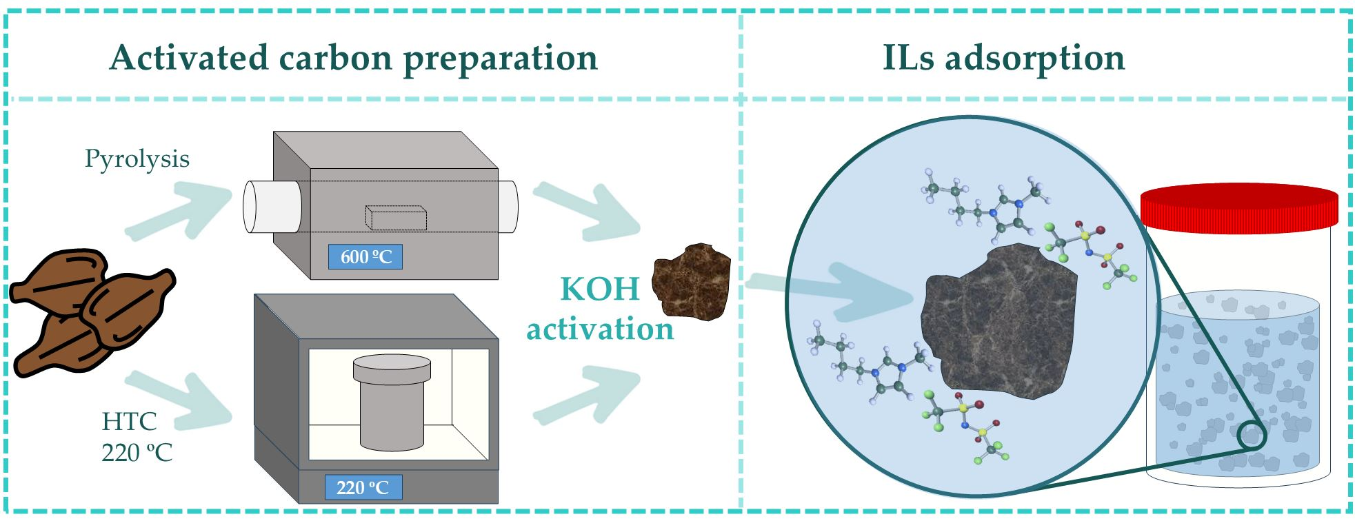 Adsorption of Imidazolium-Based ILs Combined on Activated Carbon Obtained from Grape Seeds