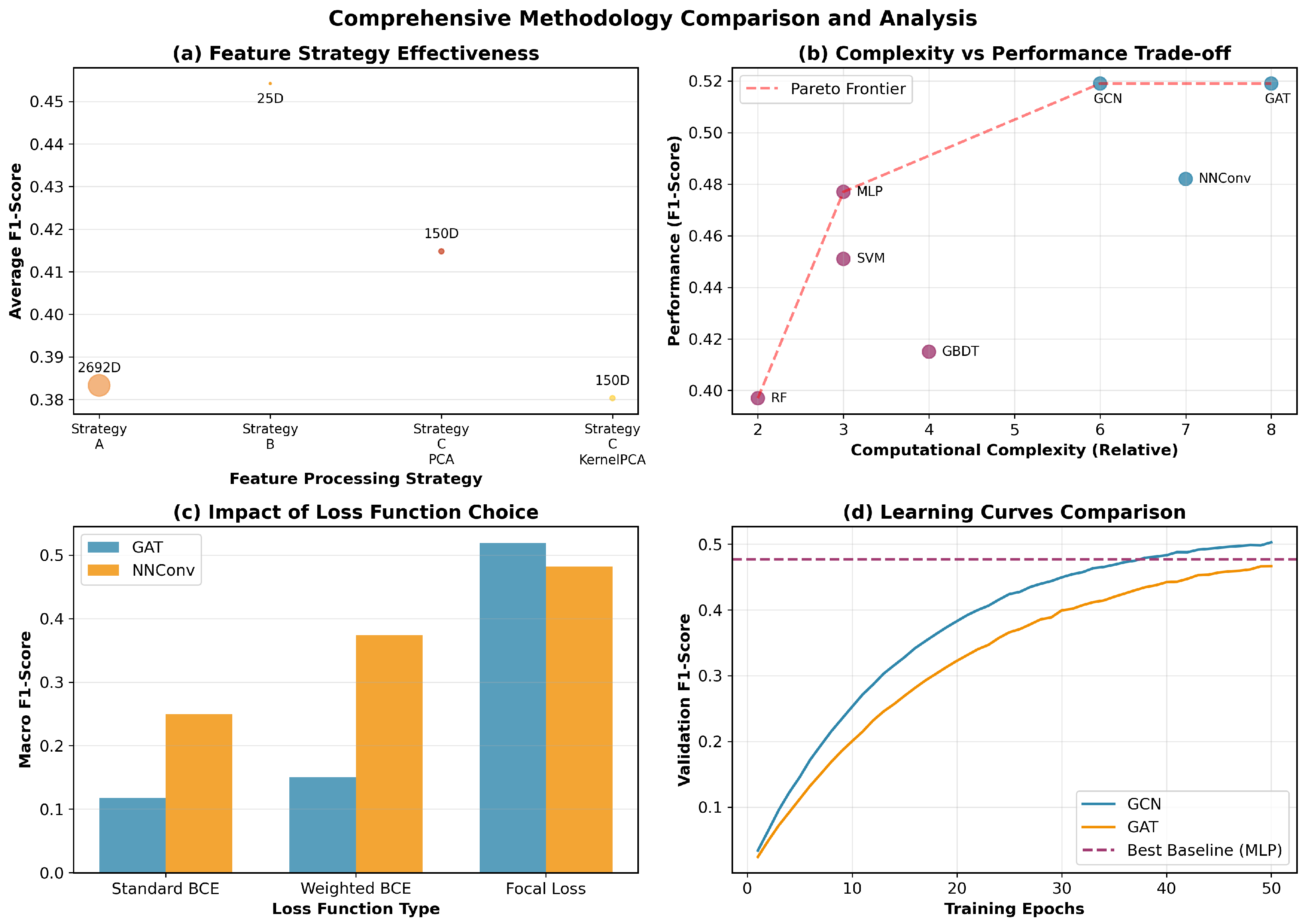 Neural Network for Graphs (NNConv) explicitly leverages edge features through learnable edge networks, making it particularly suitable for chemical applications where bond information is crucial. The edge-conditioned message passing incorporates the 6-dimensional bond features directly into neighbor aggregation, enabling the model to distinguish between different types of chemical bonds and their contributions to molecular properties.