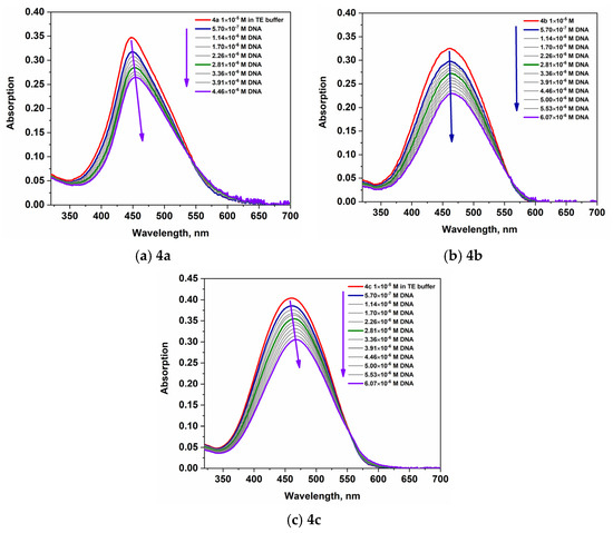 Absorption spectra of 4a–4c upon titration with DNA.