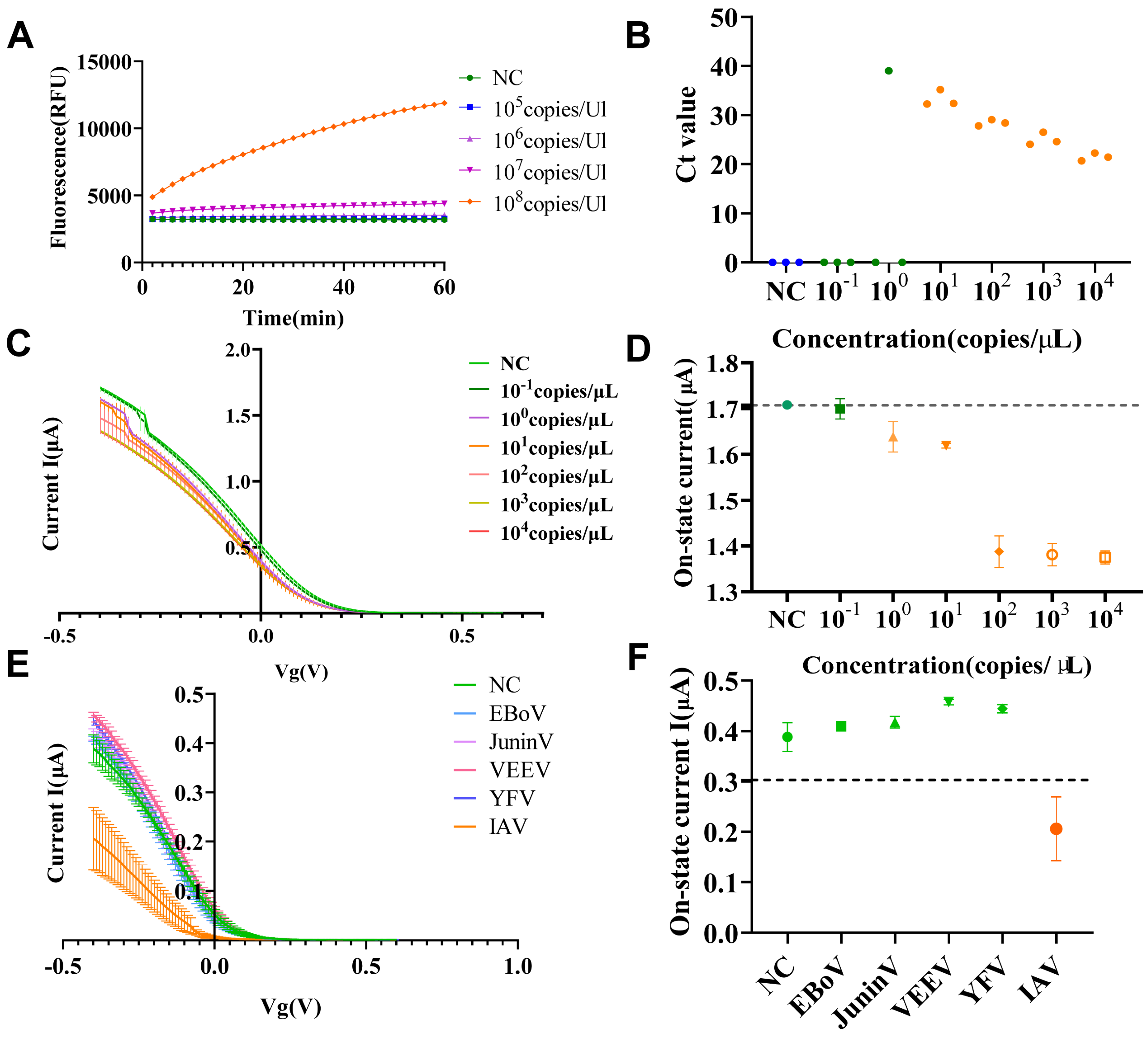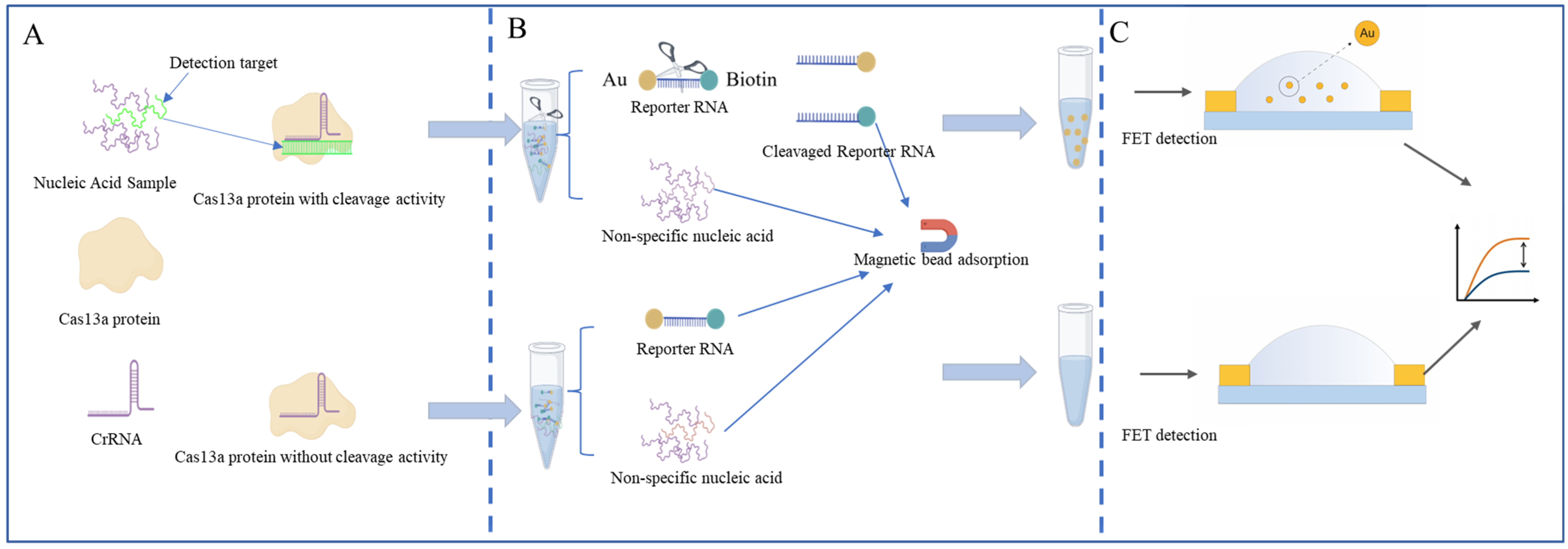 - Sun, M.; Yu, Z.; Wang, S.; Qiu, J.; Huang, Y.; Chen, X.; Zhang, Y.; Wang, C.; Zhang, X.; Liang, Y.; et al. Universal Amplification-Free RNA Detection by Integrating CRISPR-Cas10 with Aptameric Graphene Field-Effect Transistor. Nano Micro Lett. 2025, 17, 242. [Google Scholar] [CrossRef]