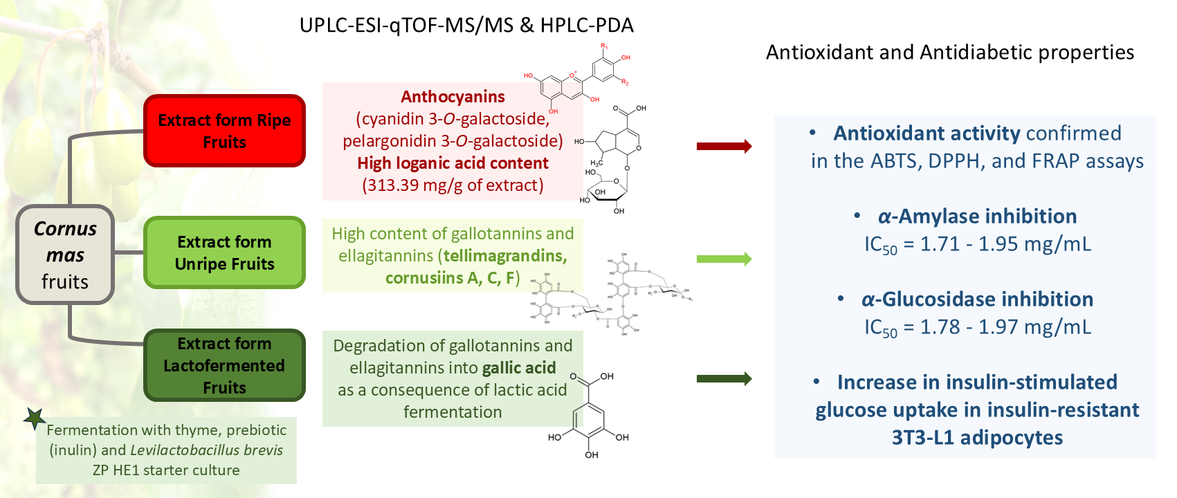 Bernacka K, Czyżowska A, Małodobra-Mazur M, Ołdakowska M, Otlewska A, Sozański T, Kucharska AZ. Chemical Composition and In Vitro Antidiabetic Effect of Extracts from Ripe, Unripe, and Fermented Unripe Cornus mas L. Fruits. Molecules. 2025; 30(23):4625. https://doi.org/10.3390/molecules30234625