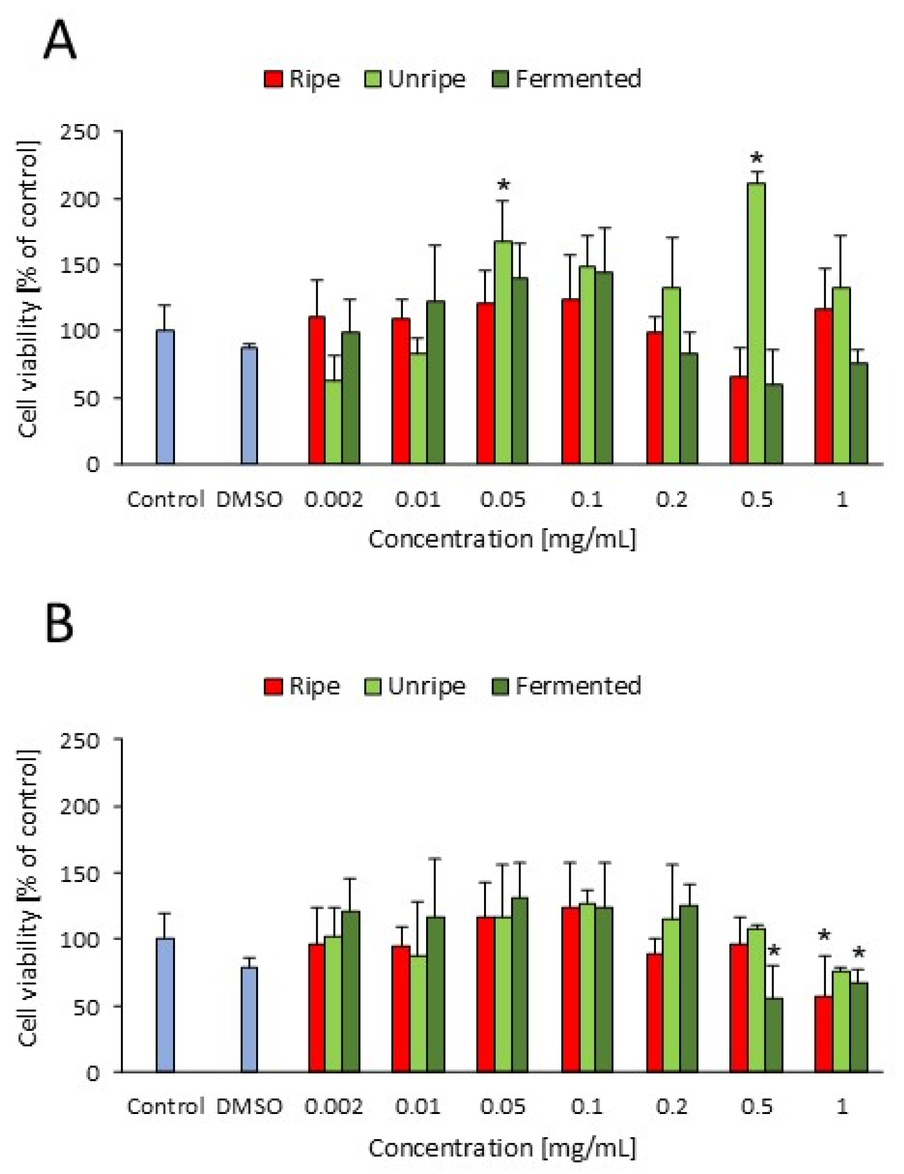2.6. Effect of C. mas Extracts on Cellular Viability