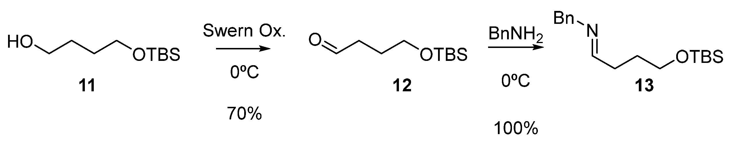 Synthesis of (E)-N-benzyl-4-((tert-butyldimethylsilyl)oxy)butan-1-imine (13).