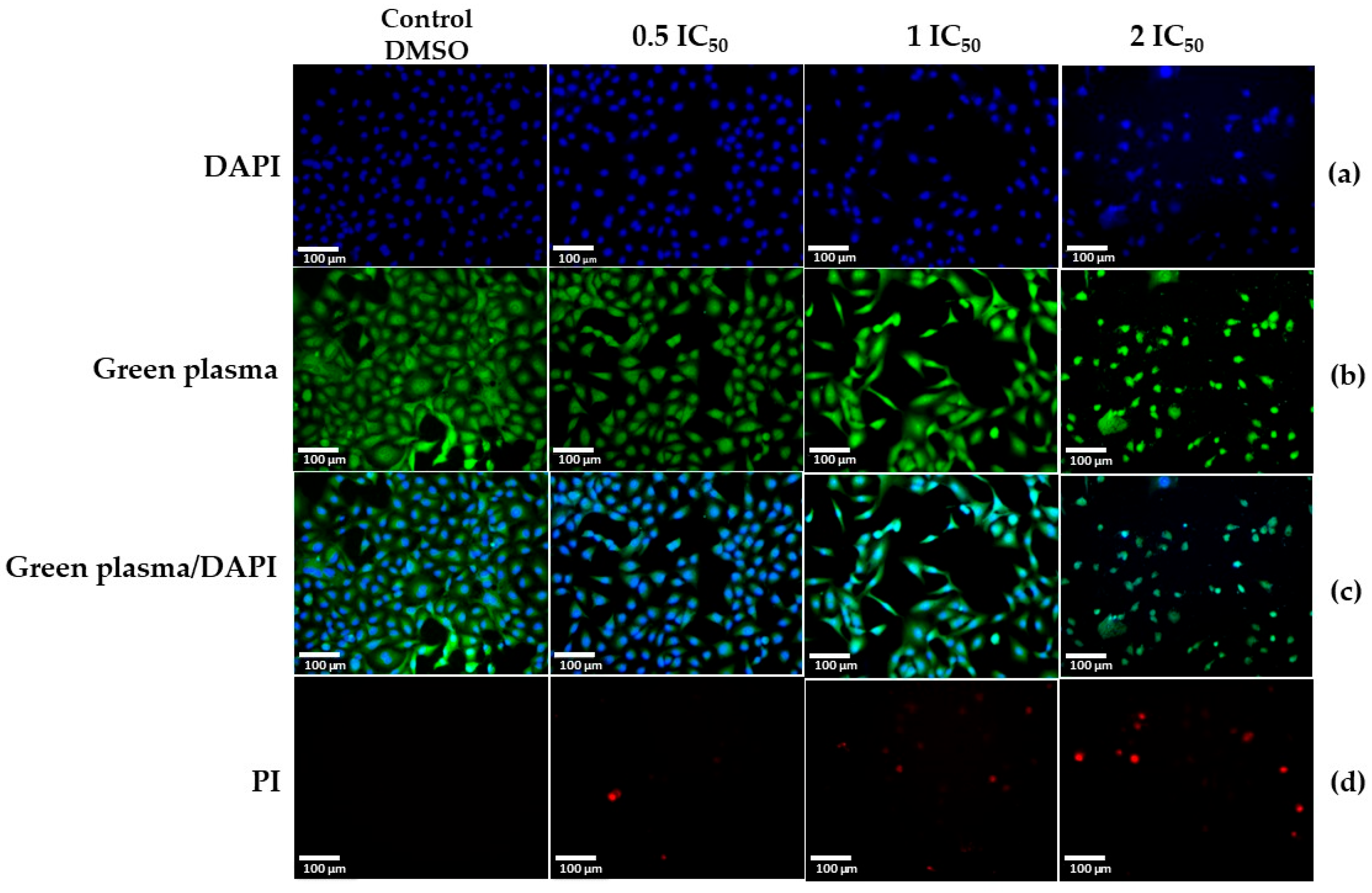 - Majtnerova, P.; Capek, J.; Petira, F.; Handl, J.; Rousar, T. Quantitative Spectrofluorometric Assay Detecting Nuclear Condensation and Fragmentation in Intact Cells. Sci. Rep. 2021, 11, 11921. [Google Scholar] [CrossRef]