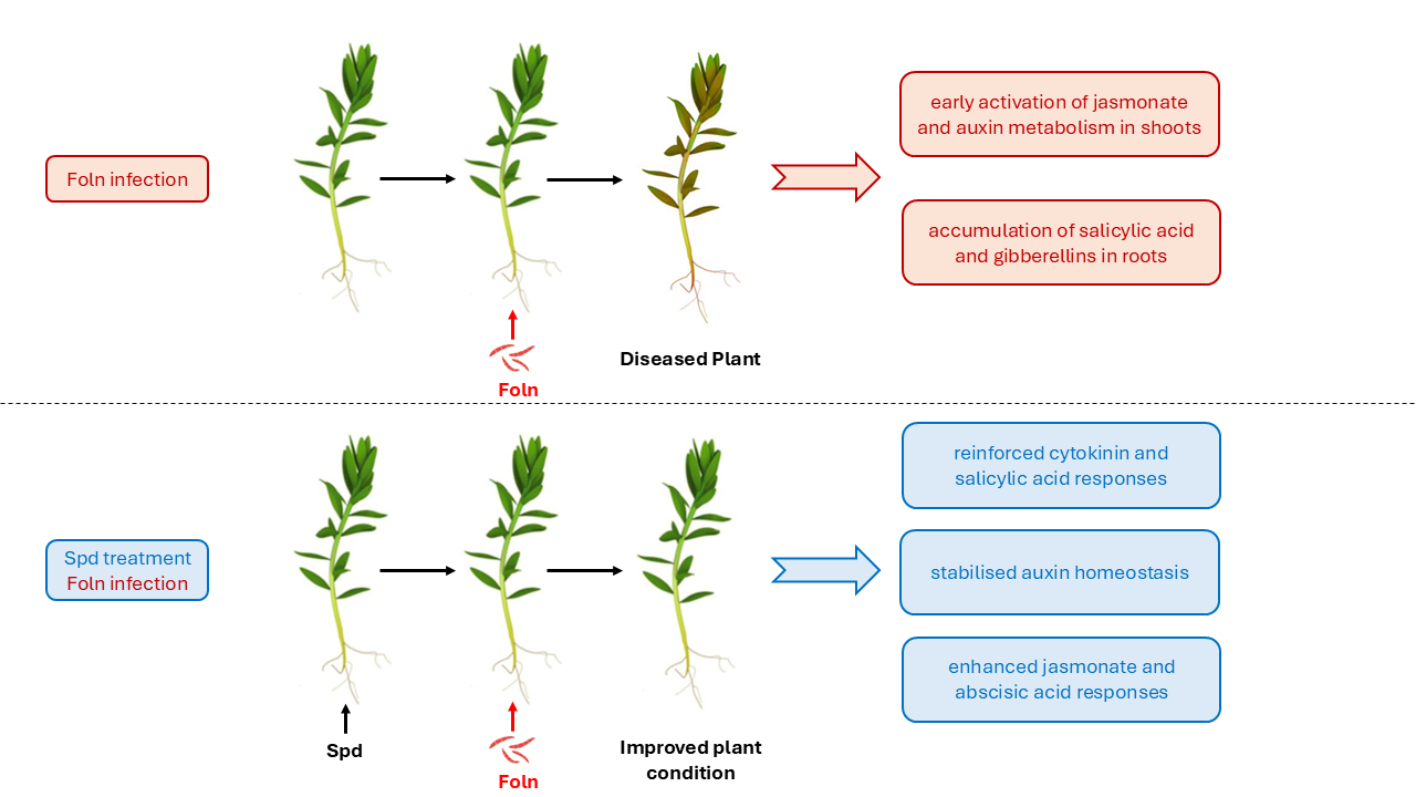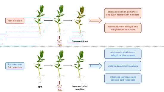 Augustyniak, B.; Petrik, I.; Tarkowska, D.; Burgberger, M.; Wojtasik, W.; Novak, O.; Kulma, A. Dynamic Hormonal Networks in Flax During Fusarium oxysporum Infection and Their Regulation by Spermidine. Molecules 2025, 30, 4631. https://doi.org/10.3390/molecules30234631