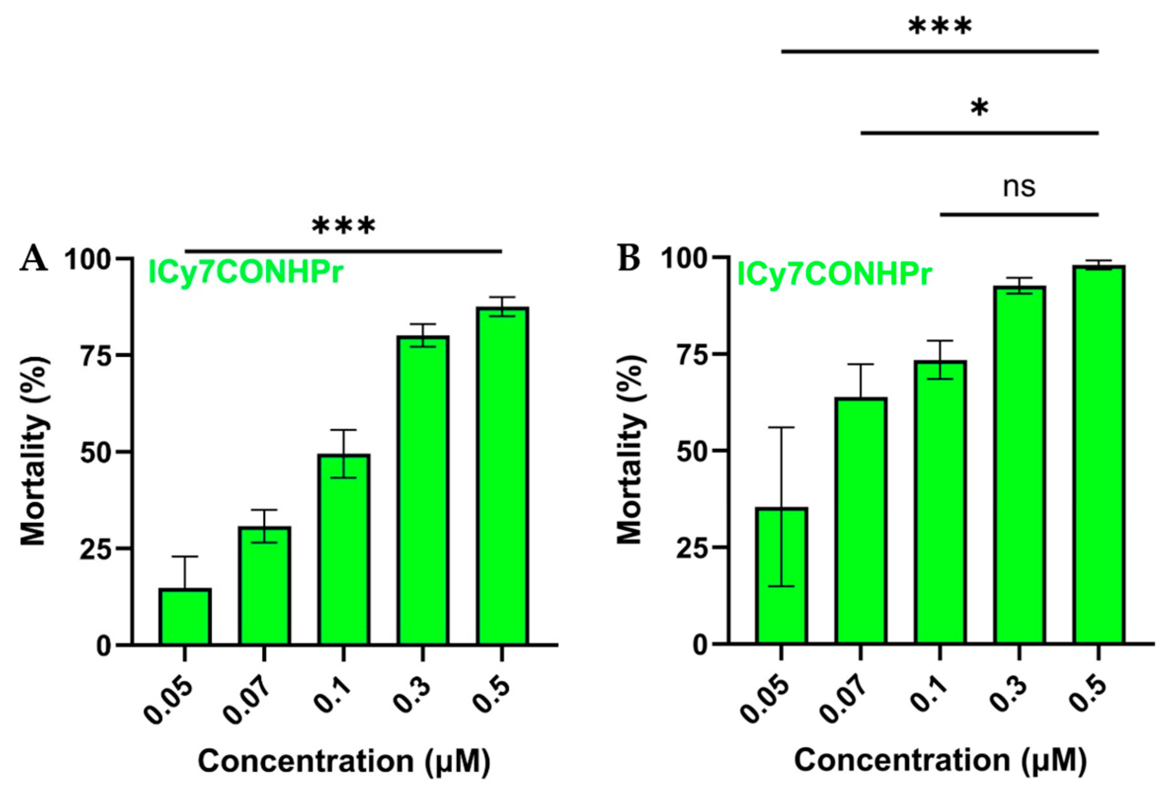 23]. Our recent studies highlighted the phototoxic potential of iodinated cyanines against bacterial pathogens [