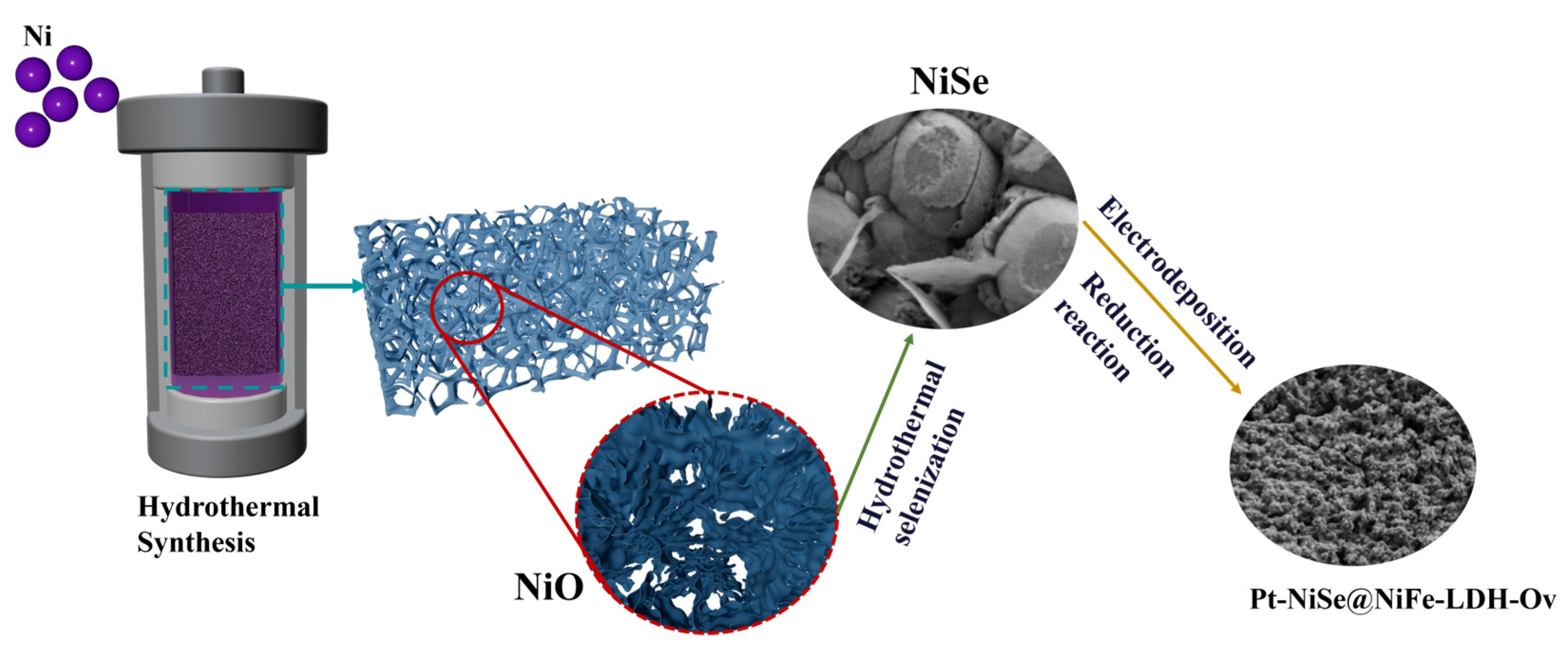 - Shou, Q.; Yang, S.; Mei, H.; Yin, R.; Lu, J.; Kong, L.; Wei, W. A heterostructure NiSe2 nanoparticle @ FeSe2 microrod catalyst for efficient electrocatalytic oxygen evolution. J. Appl. Electrochem. 2025, 55, 785–795. [Google Scholar] [CrossRef]