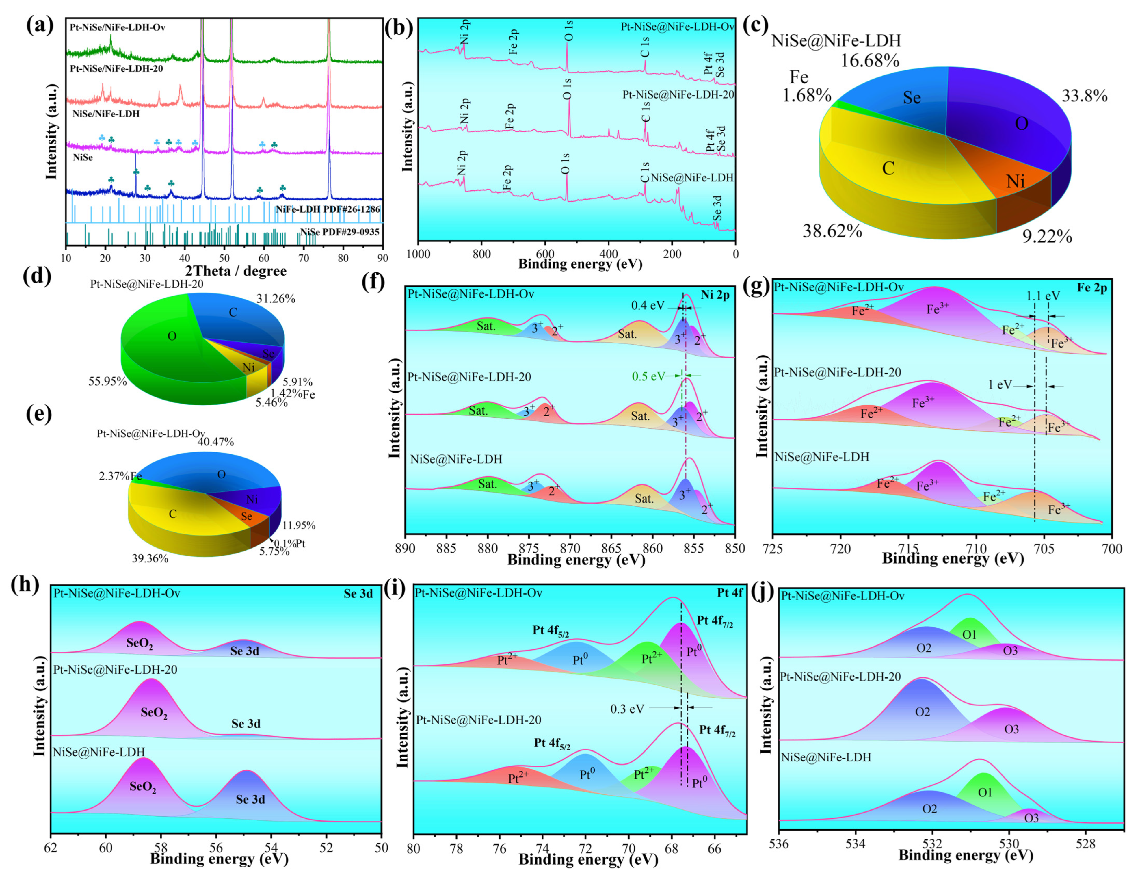 3.4. Synthesis of Pt-NiSe@NiFe-LDH-Ov Catalyst