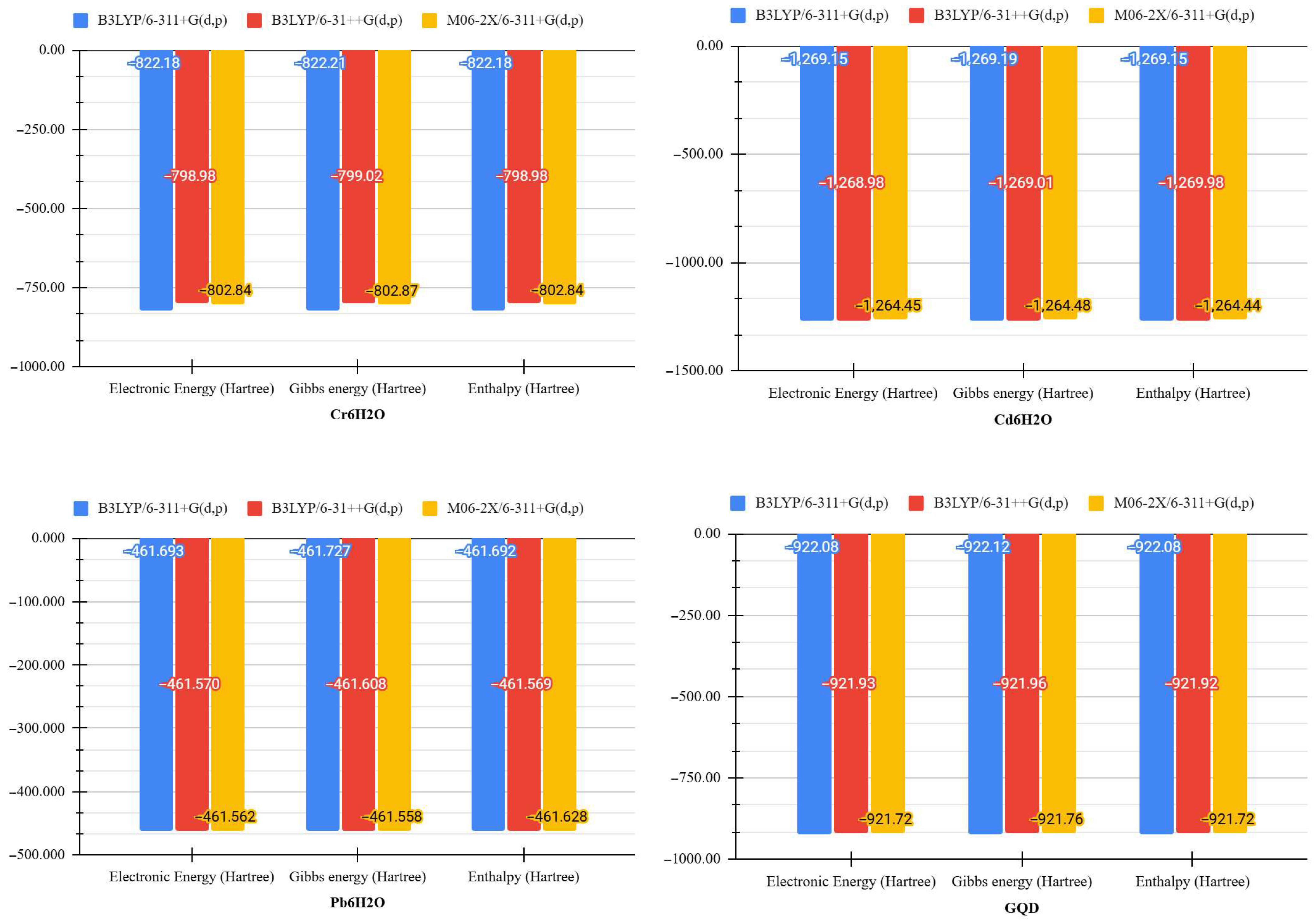 | GQD | B3LYP/6-311+G(d,p) | −922.084 | −922.120 | −922.0820 | 77.340 |