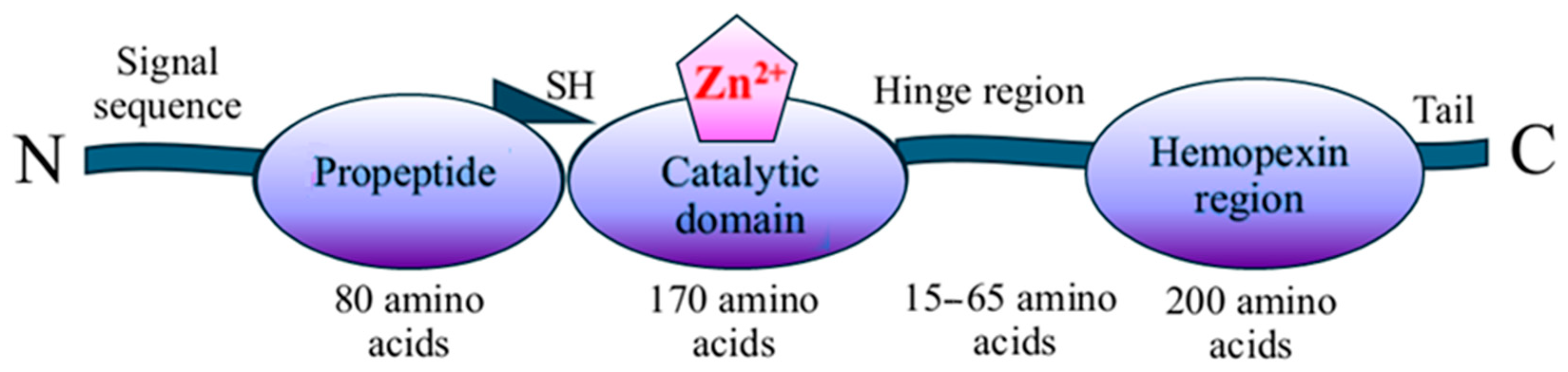 - Nagase, H.; Visse, R.; Murphy, G. Structure and Function of Matrix Metalloproteinases and TIMPs. Cardiovasc. Res. 2006, 69, 562–573. [Google Scholar] [CrossRef]