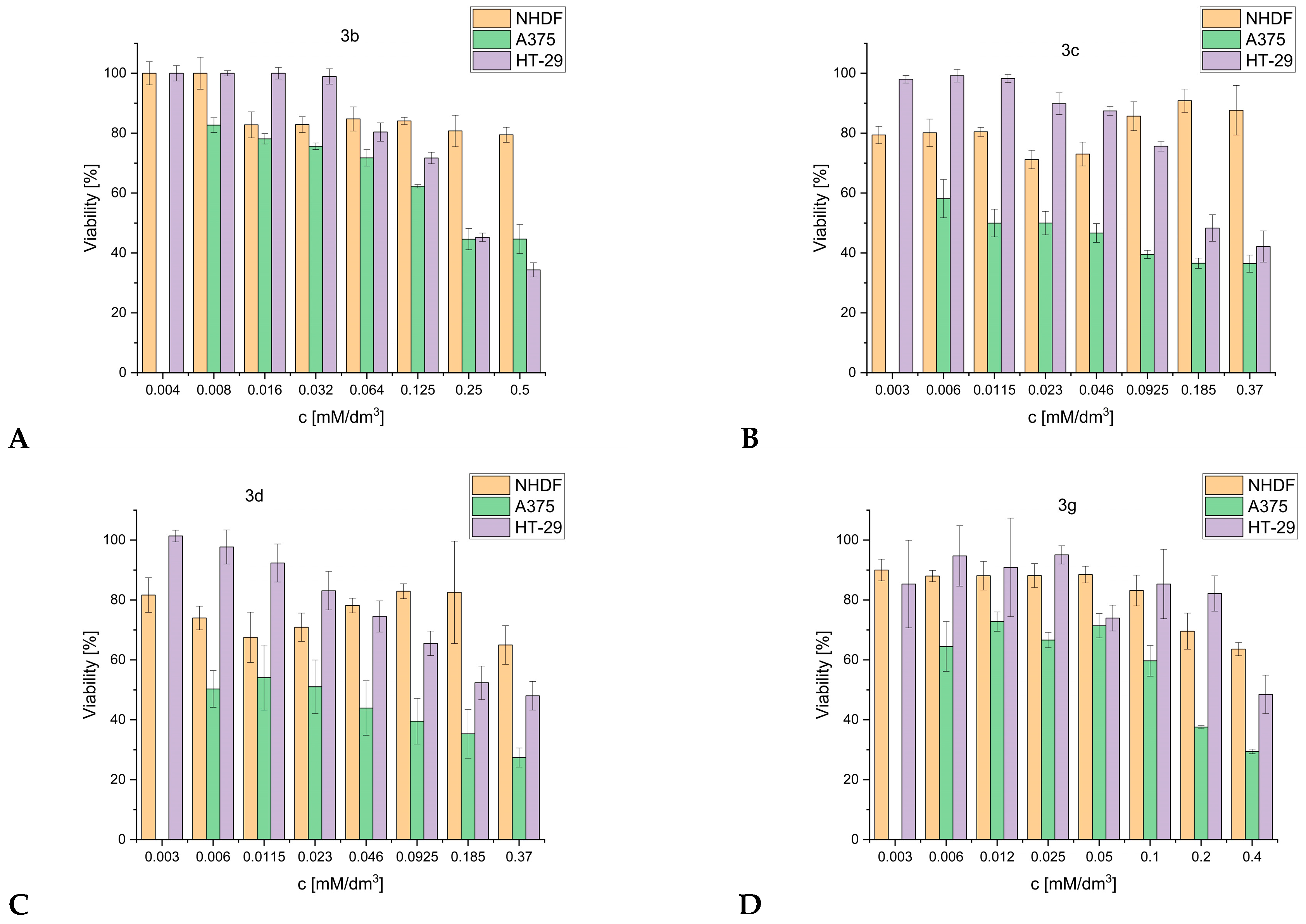 - Strzelecka, M.; Glomb, T.; Drąg-Zalesińska, M.; Kulbacka, J.; Szewczyk, A.; Saczko, J.; Kasperkiewicz-Wasilewska, P.; Rembiałkowska, N.; Wojtkowiak, K.; Jezierska, A.; et al. Synthesis, Anticancer Activity and Molecular Docking Studies of Novel N-Mannich Bases of 1,3,4-Oxadiazole Based on 4,6-Dimethylpyridine Scaffold. Int. J. Mol. Sci. 2022, 23, 11173. [Google Scholar] [CrossRef]