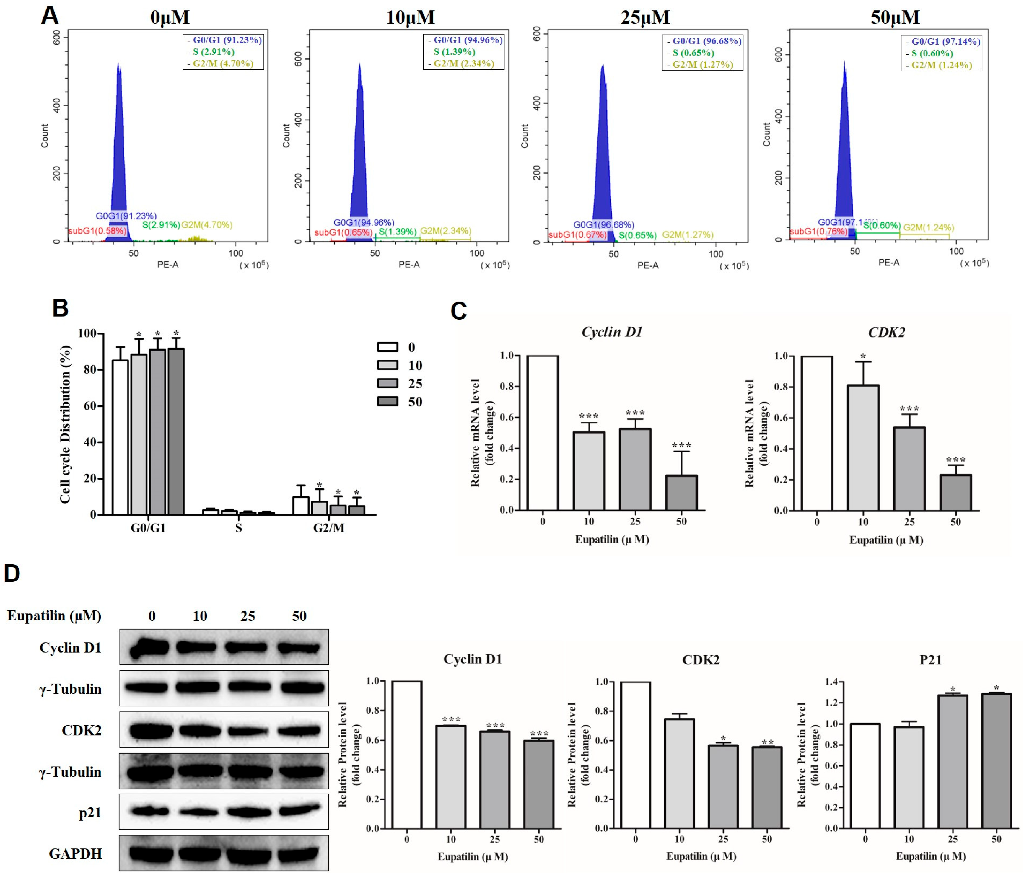 2.2. Cell Cycle Regulation by Eupatilin