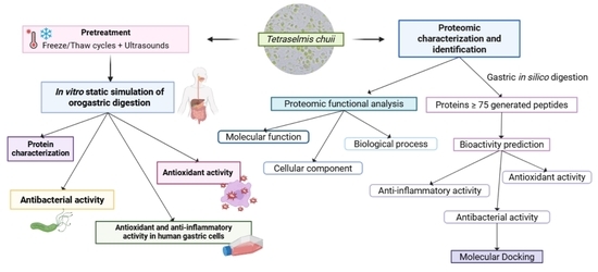 - Tejano, L.A.; Peralta, J.P.; Yap, E.E.S.; Panjaitan, F.C.A.; Chang, Y.W. Prediction of bioactive peptides from Chlorella sorokiniana proteins using proteomic techniques in combination with bioinformatics analyses. Int. J. Mol. Sci. 2019, 20, 1786. [Google Scholar] [CrossRef]