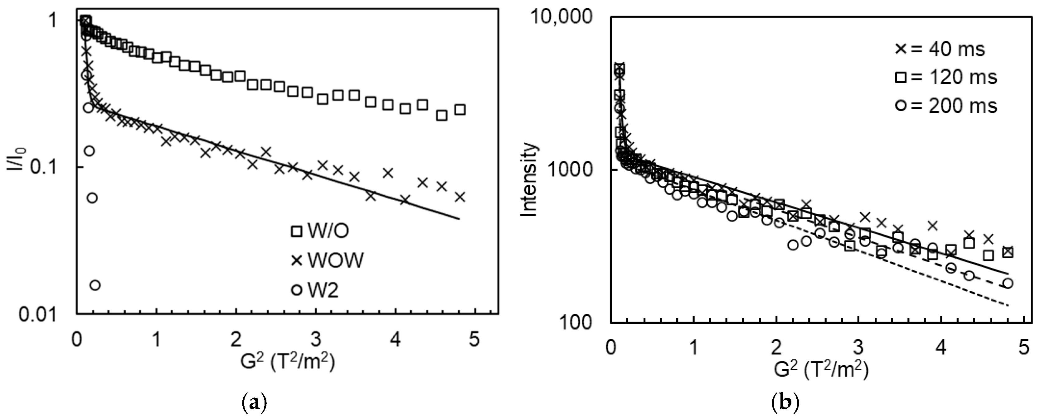 - Vermeir, L.; Balcaen, M.; Sabatino, P.; Dewettinck, K.; Van der Meeren, P. Influence of molecular exchange on the enclosed water volume fraction of W/O/W double emulsions as determined by low-resolution NMR diffusometry and T2-relaxometry. Colloids Surf. A Physicochem. Eng. Asp. 2014, 456, 129–138. [Google Scholar] [CrossRef]