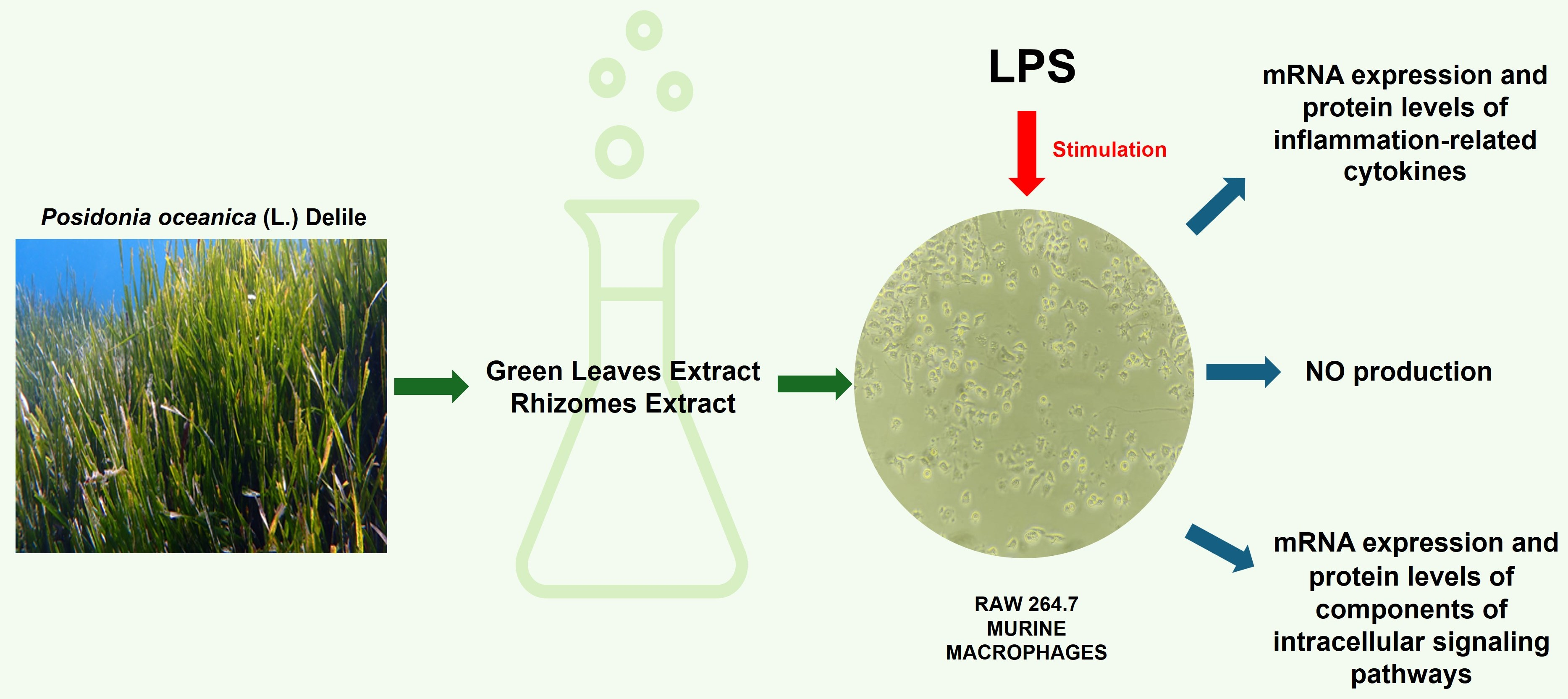 Abruscato G, Ganci D, Bellistrì F, Chiarelli R, Mauro M, Vizzini A, Arizza V, Vazzana M, Luparello C. Anti-Inflammatory and Immunomodulatory Effects of Aqueous Extracts from Green Leaves and Rhizomes of Posidonia oceanica (L.) Delile on LPS-Stimulated RAW 264.7 Macrophages. Molecules. 2025; 30(24):4685. https://doi.org/10.3390/molecules30244685