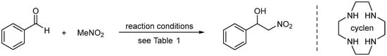 - Vovard-LeBray, C.; Jiang, F.; Wu, X.-F.; Sortais, J.-B.; Darcel, C. Cyclen-Catalyzed Henry Reaction Under Neutral Conditions. Tetrahedron Lett. 2010, 51, 4555–4557. [Google Scholar] [CrossRef]