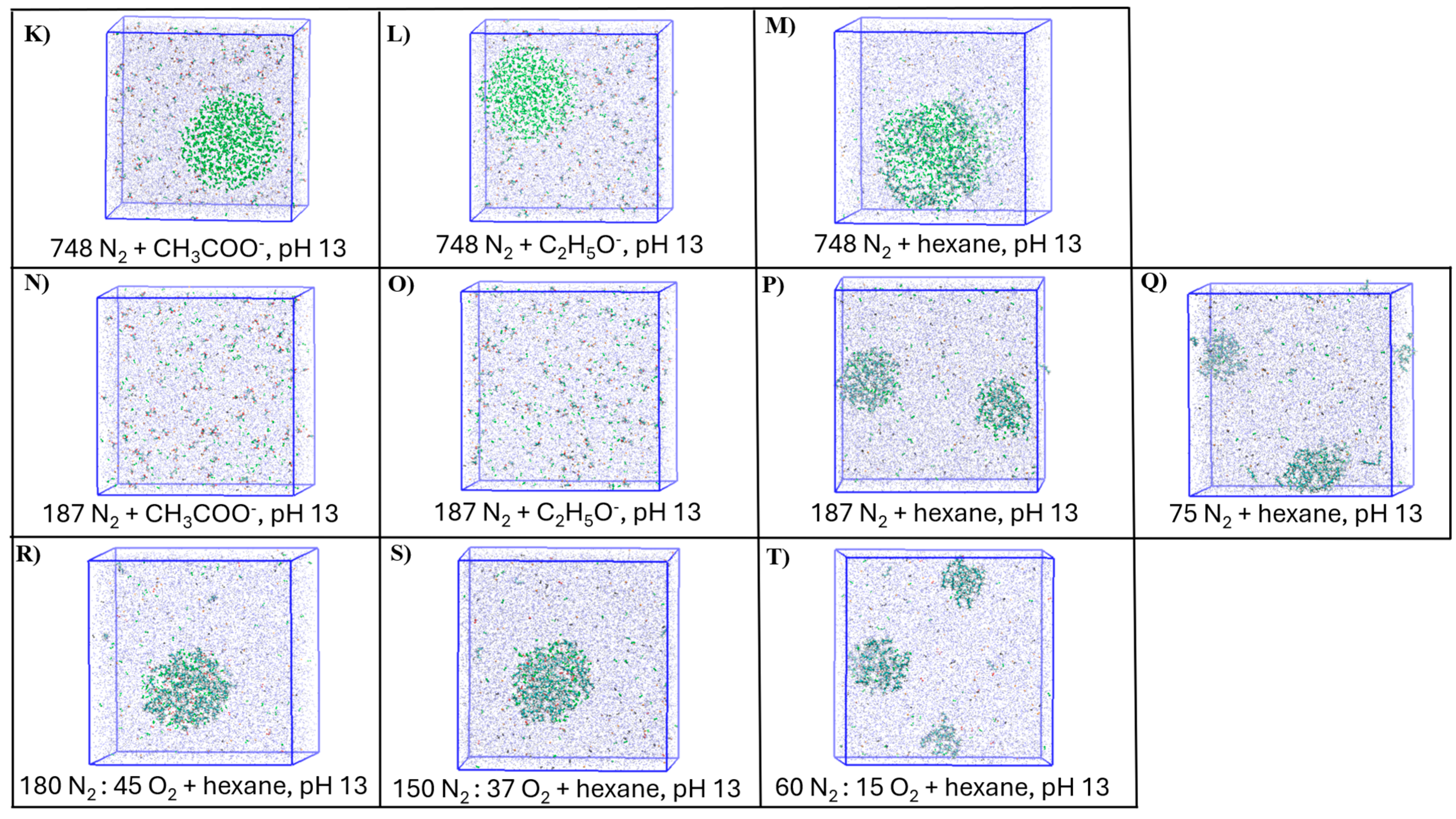 | 60 N2 + 15 O2 molecules in NB (pH 13) | 60 N2:15 O2 + hexane | - | - | 100 | 60 | 60 |