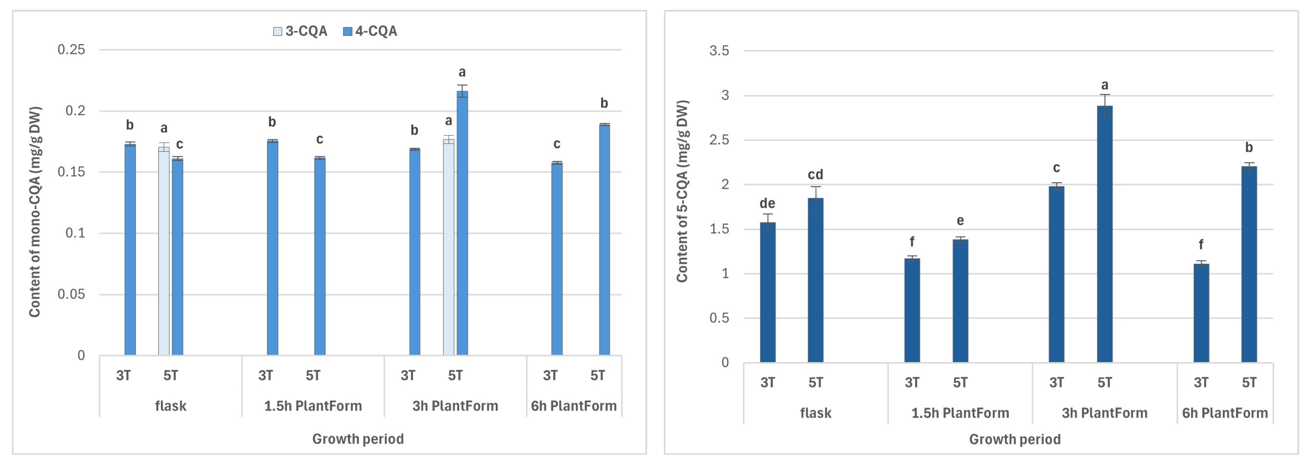 2.4. Productivity of Caffeoylquinic Acid Derivatives
