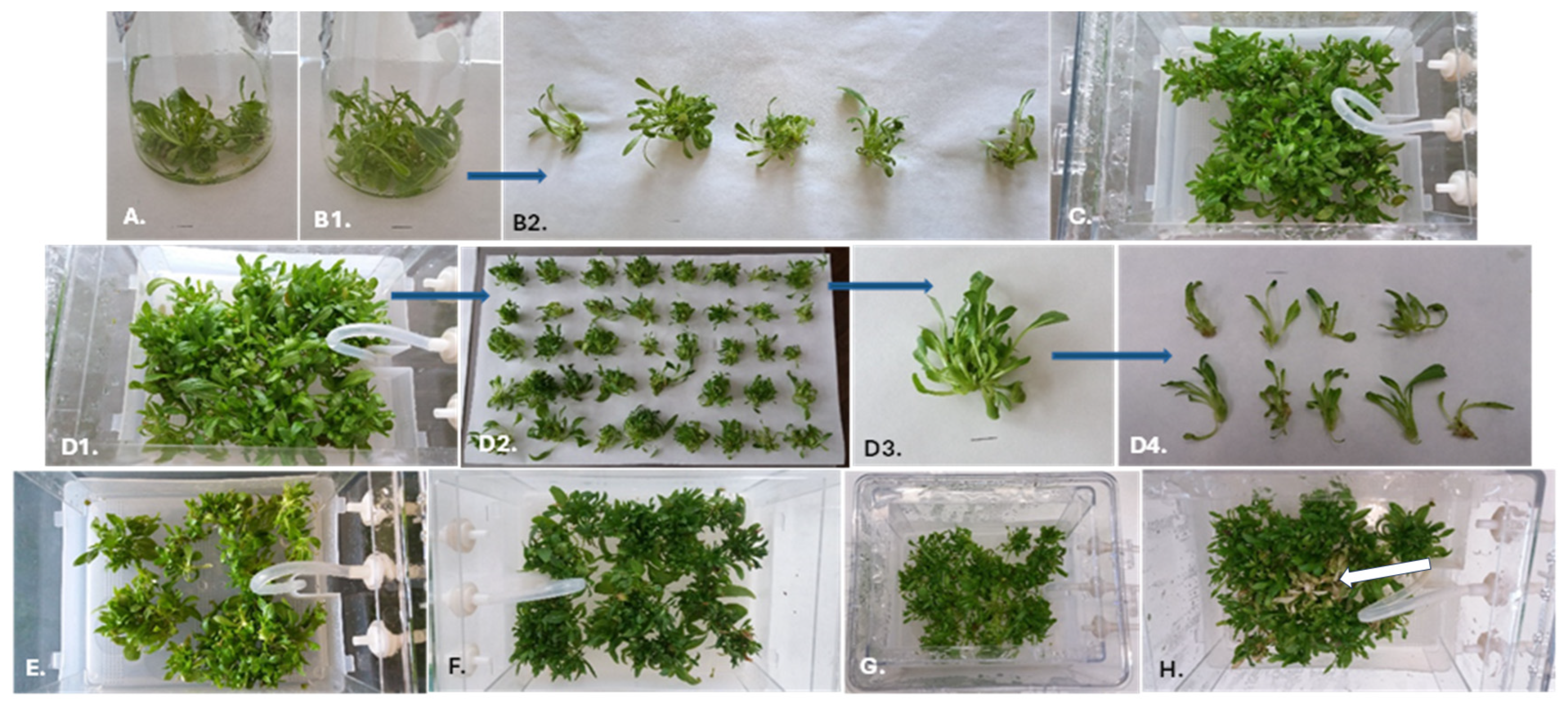 - Méndez-Hernández, H.A.; Loyola-Vargas, V.M. Plant micropropagation and temporary immersion systems. Methods Mol. Biol. 2024, 2827, 35–50. [Google Scholar] [CrossRef] [PubMed]
