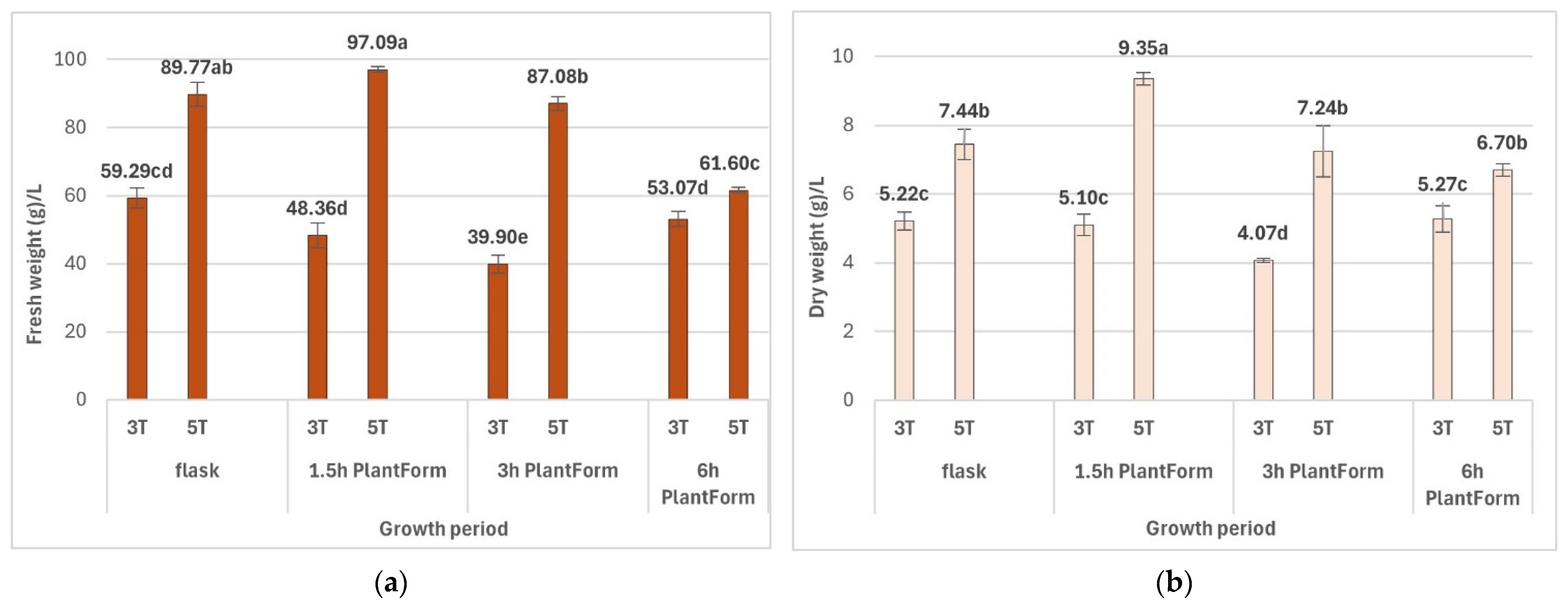 - Makowski, W.; Królicka, A.; Tokarz, B.; Szopa, A.; Ekiert, H.; Tokarz, K. Temporary immersion bioreactors as a useful tool for obtaining high productivity of phenolic compounds with strong antioxidant properties from Pontechium maculatum. Plant Cell Tissue Organ Cult. 2023, 153, 525–537. [Google Scholar] [CrossRef]