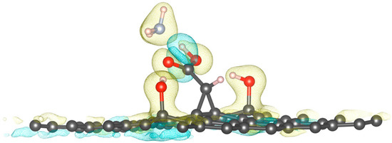 - Baachaoui, S.; Aldulaijan, S.; Sementa, L.; Fortunelli, A.; Dhouib, A.; Raouafi, N. Density Functional Theory Investigation of Graphene Functionalization with Activated Carbenes and Its Application in the Sensing of Heavy Metallic Cations. J. Phys. Chem. C 2021, 125, 26418–26428. [Google Scholar] [CrossRef]