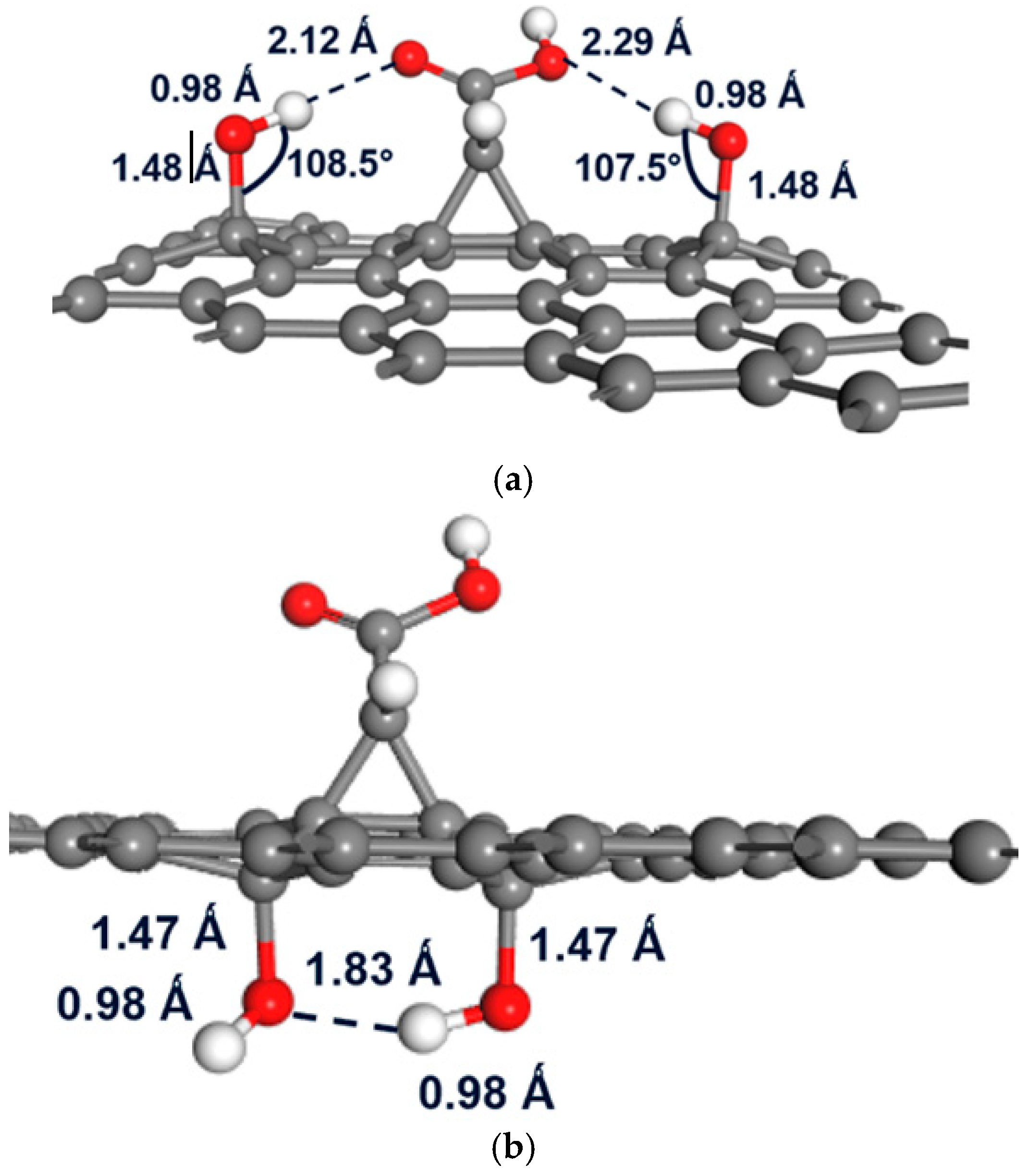 2.1. Graphene Functionalization with Carbene and Hydroxyl Groups