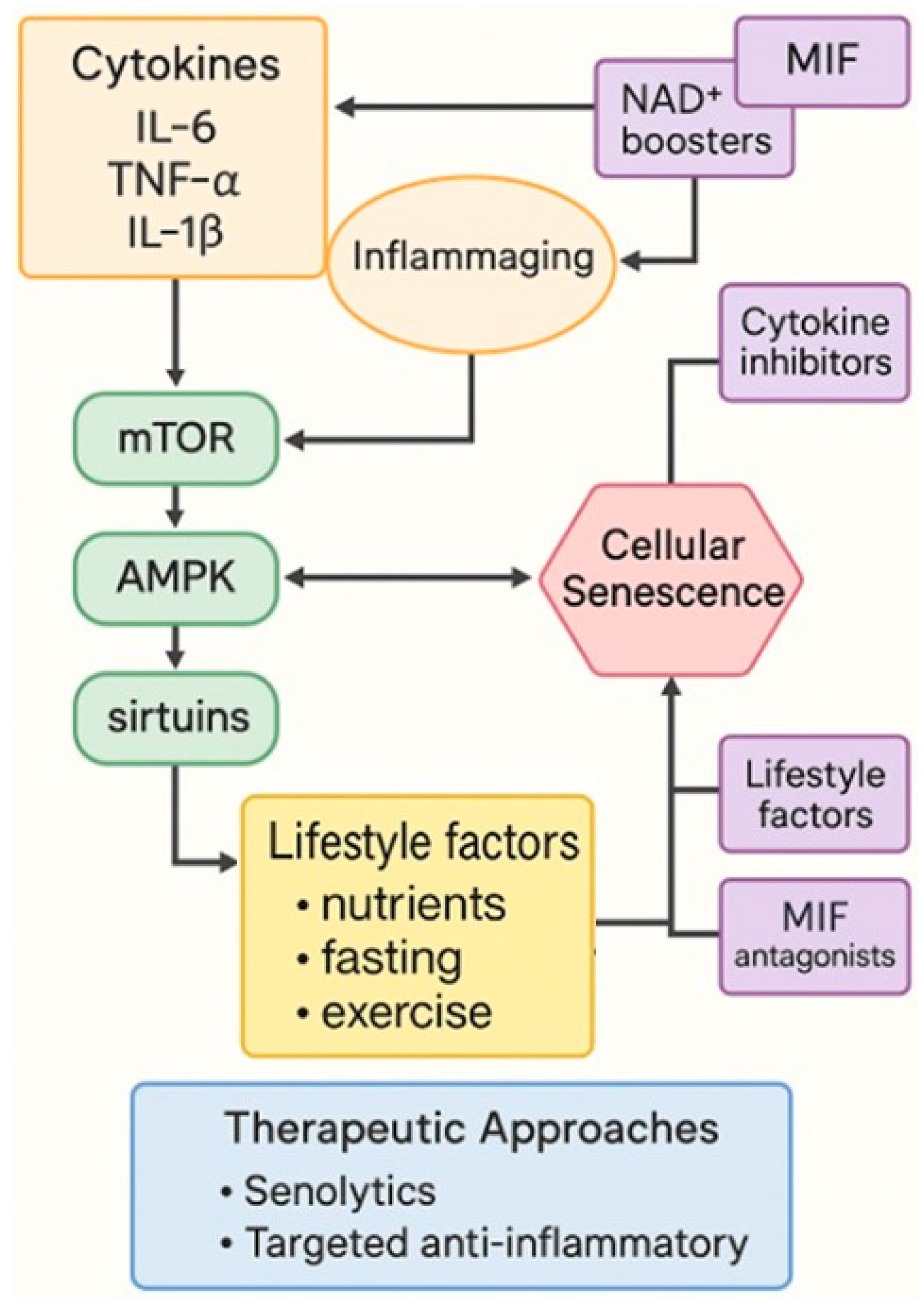 | Inflammaging | Chronic low-grade inflammation increasing with age. |