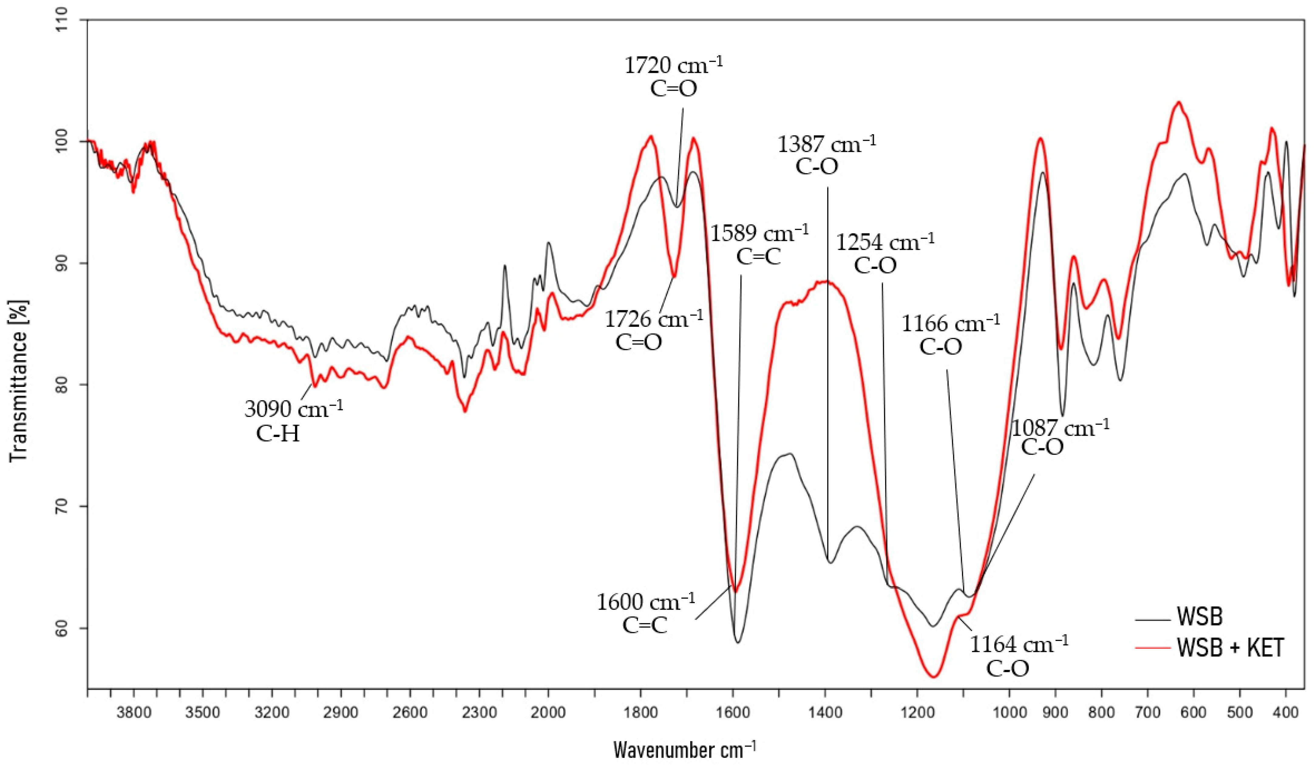 | Babassu coconut husk biochar | KET | 79.1 | pH: 2 teq: 300 min trt: physical modification (sonication) | [52] |