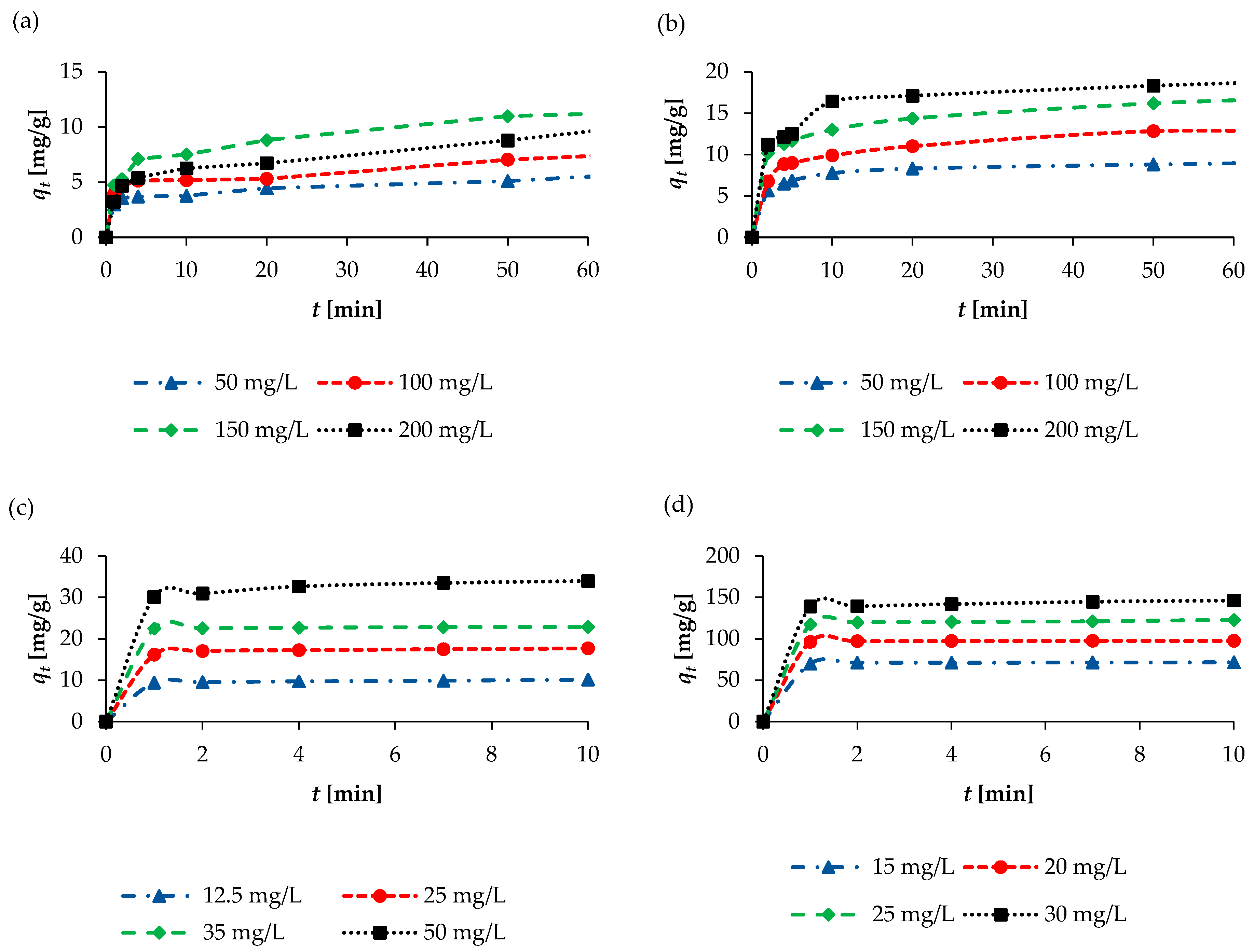 - Tseng, R.L.; Wu, F.C.; Juang, R.S. Characteristics and applications of the Lagergren’s first-order equation for adsorption kinetics. J. Taiwan Inst. Chem. Eng. 2010, 41, 661–669. [Google Scholar] [CrossRef]