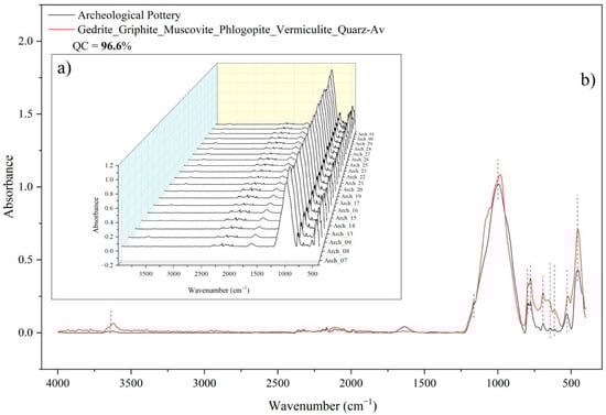- Akyuz, S.; Akyuz, T.; Basaran, S.; Bolcal, C.; Gulec, A. Analysis of ancient potteries using FT-IR, micro-Raman and EDXRF spectrometry. Vib. Spectrosc. 2008, 48, 276–280. [Google Scholar] [CrossRef]