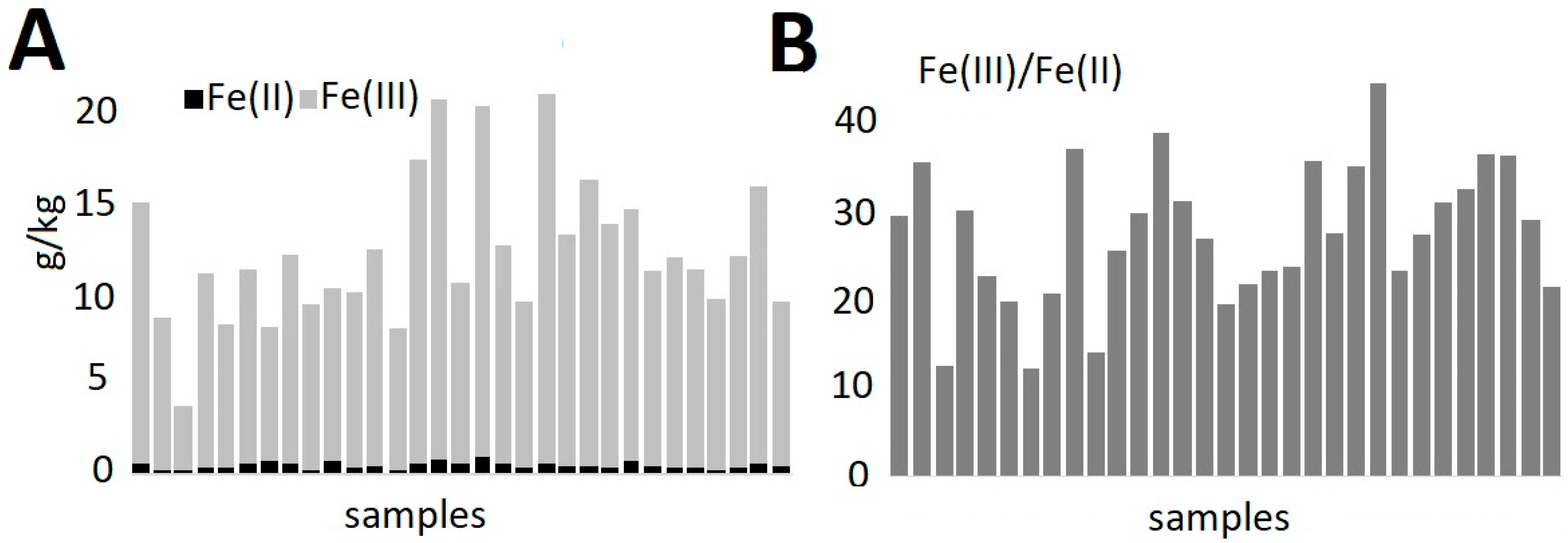 - Niedzielski, P.; Kozak, L. Iron’s fingerprint of deposits—Iron speciation as a geochemical marker. Environ. Sci Pollut. R 2018, 25, 242–248. [Google Scholar] [CrossRef] [PubMed]