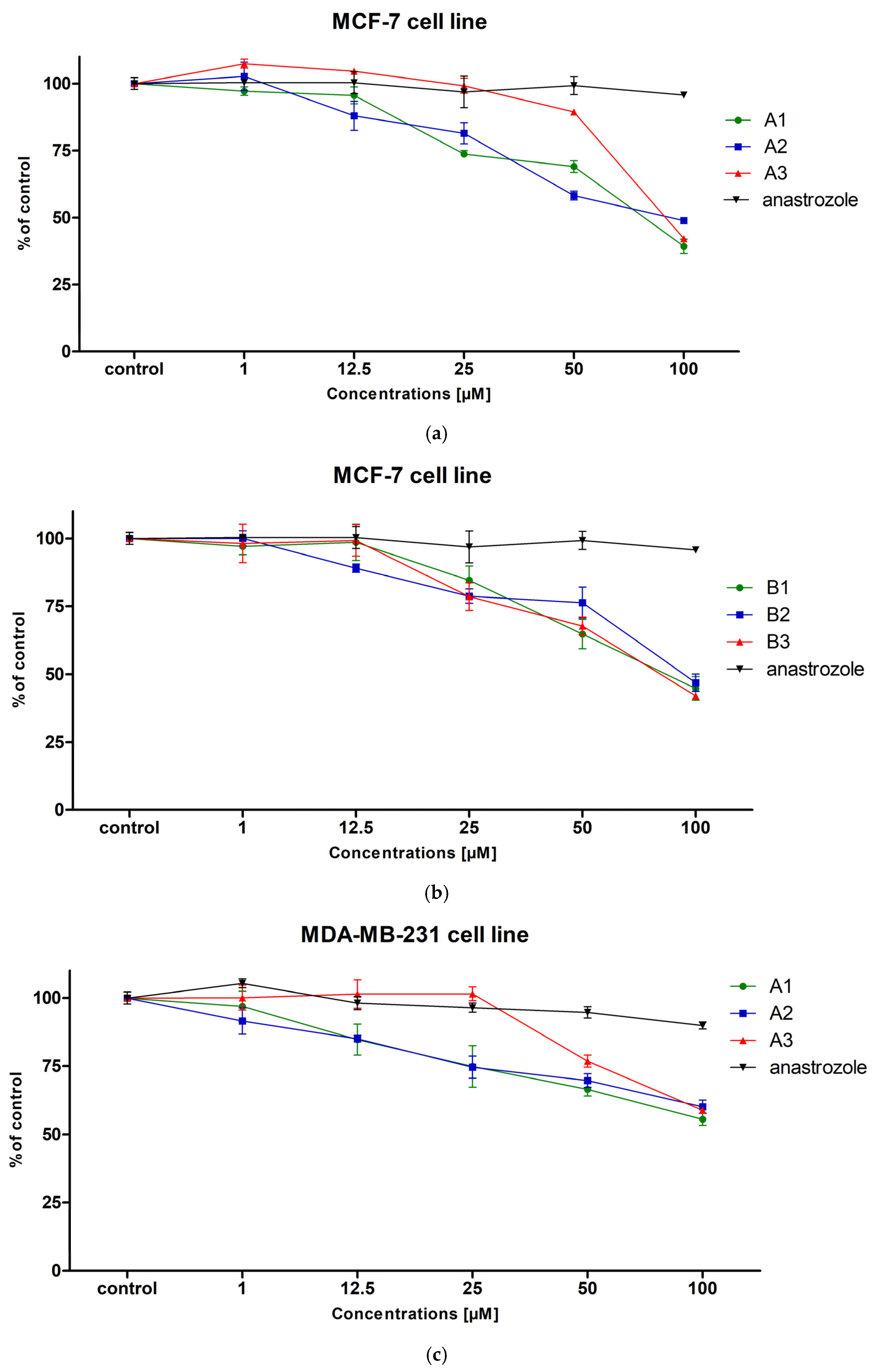 | Cell Line | A1 | A2 | A3 | B1 | B2 | B3 | Anastrozole |