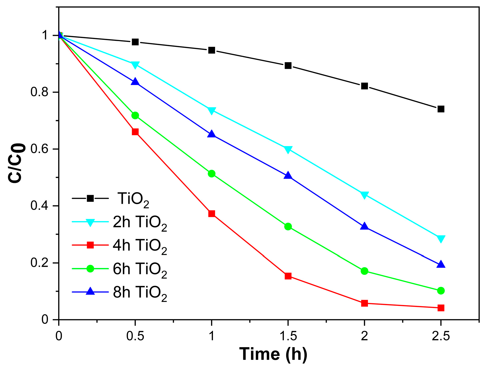 2 Nanospheres were treated using vacuum high-temperature activation at different times (2, 4, 6, and 8 h), resulting in 2hTiO
