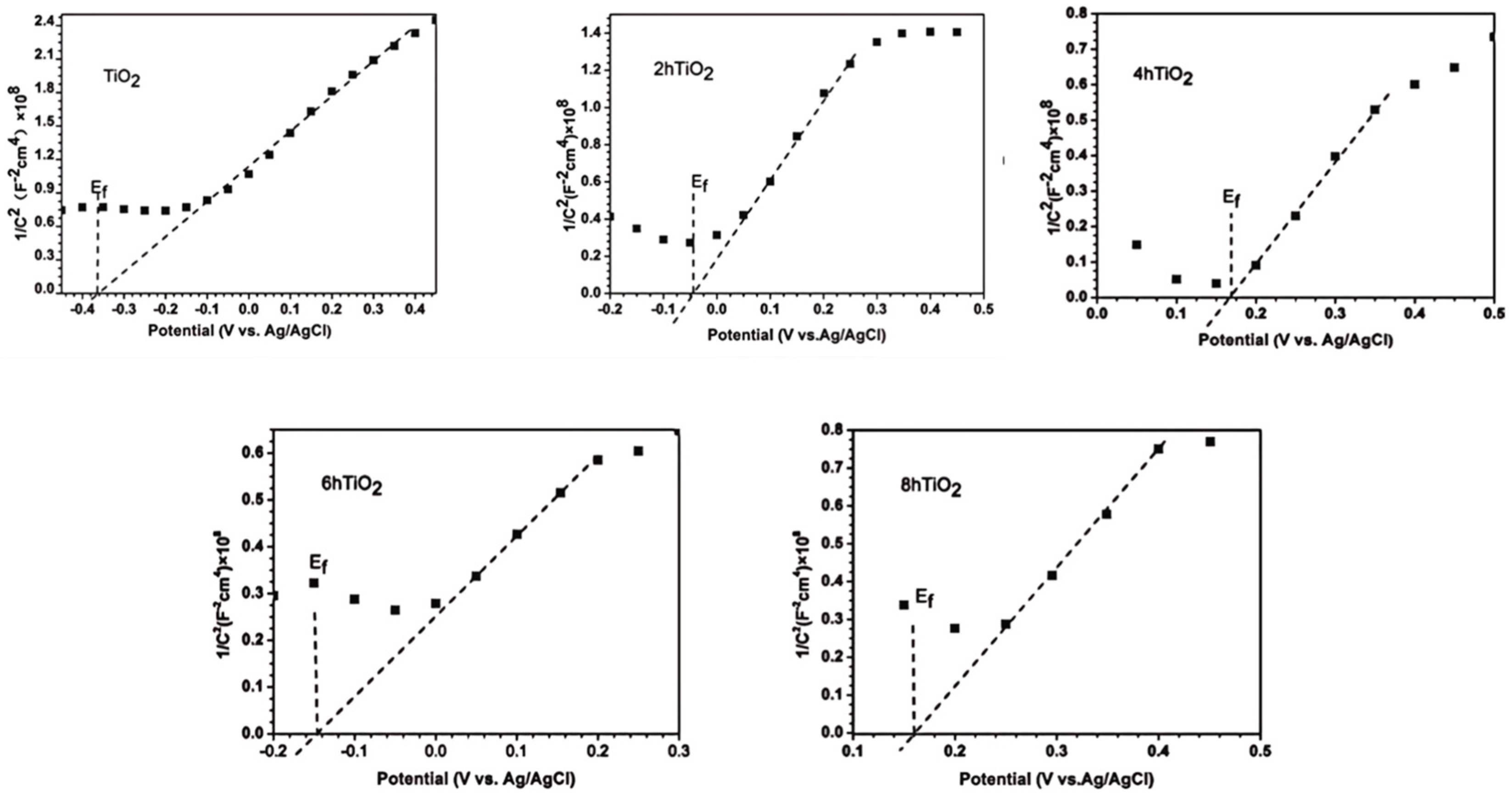 Figure 8 presents the Mott-Schottky plots for TiO