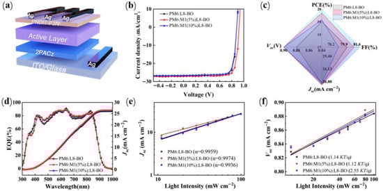 - Li, C.; Yao, G.; Gu, X.; Lv, J.; Hou, Y.; Lin, Q.; Yu, N.; Abbasi, M.S.; Zhang, X.; Zhang, J.; et al. Highly Efficient Organic Solar Cells Enabled by Suppressing Triplet Exciton Formation and Non-Radiative Recombination. Nat. Commun. 2024, 15, 8872. [Google Scholar] [CrossRef]
