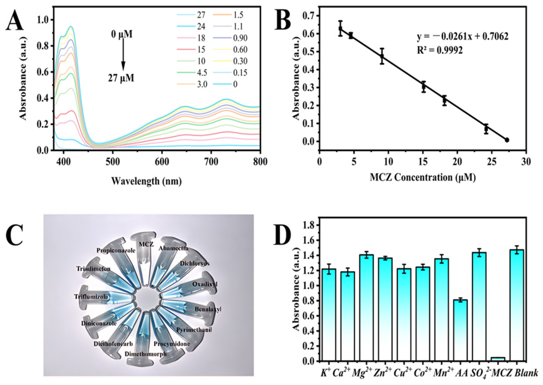 Chicago/Turabian StylePang, Shuyue, Lina Chen, Yangyuxin Liu, Xiuting Lu, Hongfei Liu, Yuting Shu, Helong Bai, Jing Wang, and Dongfang Shi. 2025. "Superior Oxidase-Mimetic Activity of Co-MOF Nanozyme for Smartphone-Based Visually Colorimetric Assay of Mancozeb" Molecules 30, no. 24: 4758. https://doi.org/10.3390/molecules30244758