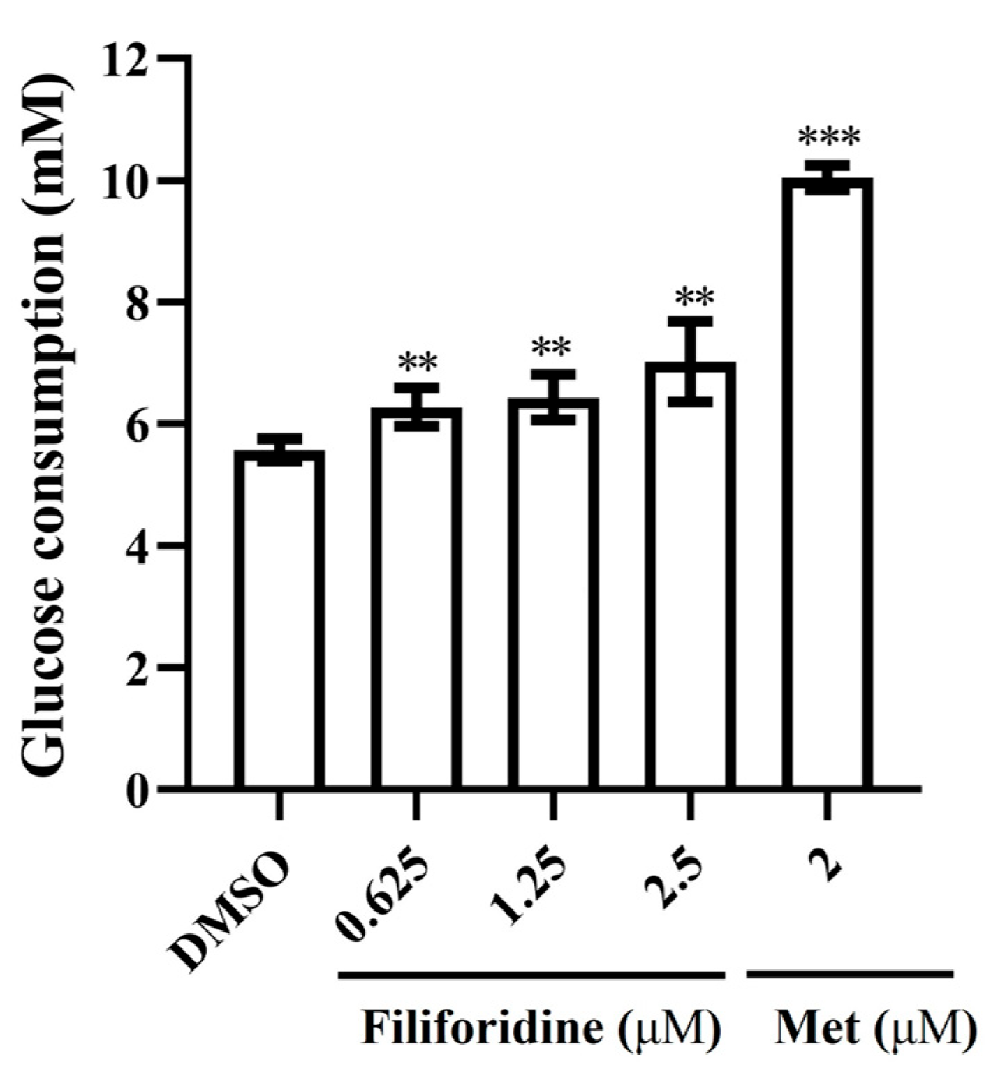 2.3. Filiforidine Potently Stimulates Glucose Consumption and Shows No Cytotoxicity in HL-7702 Cells