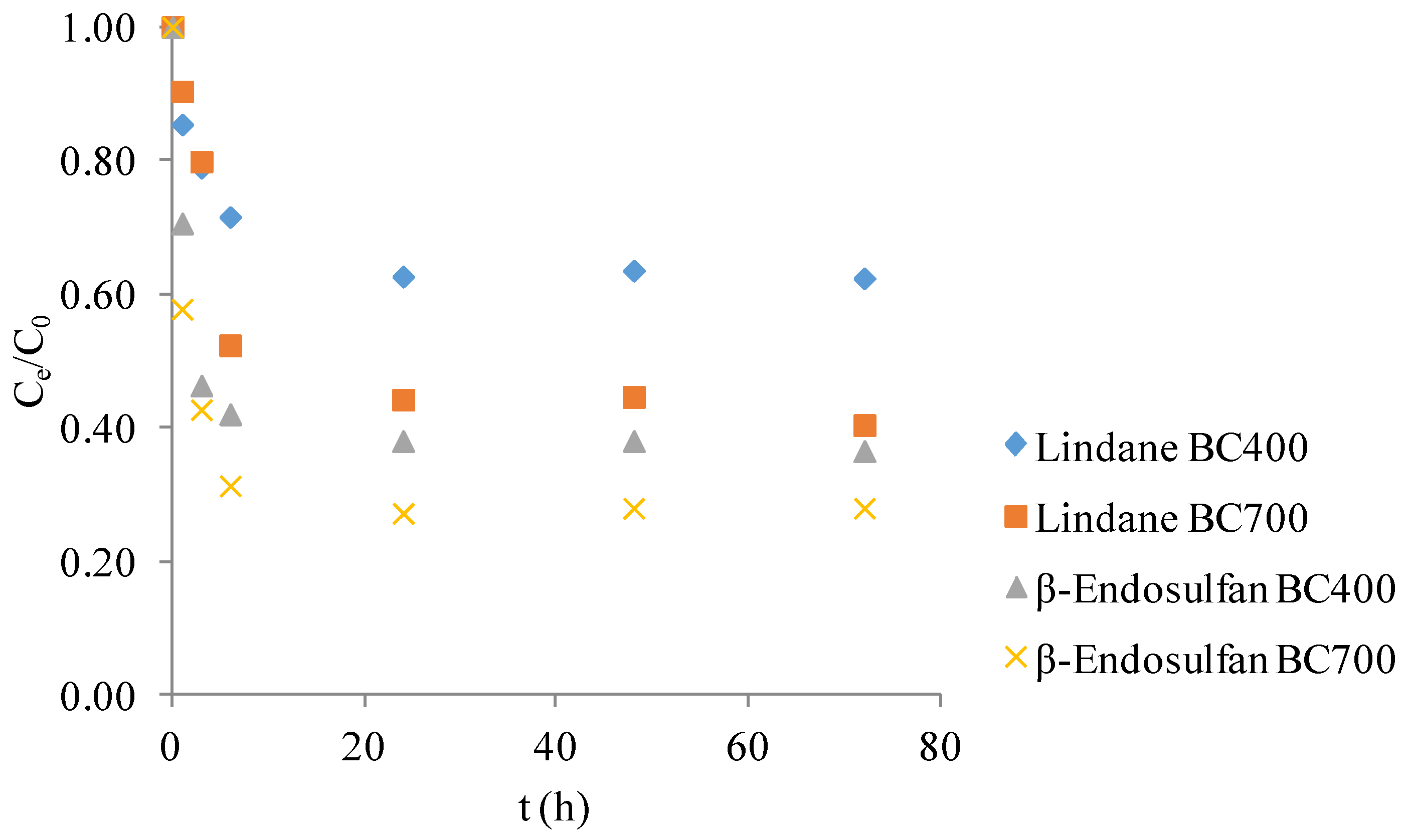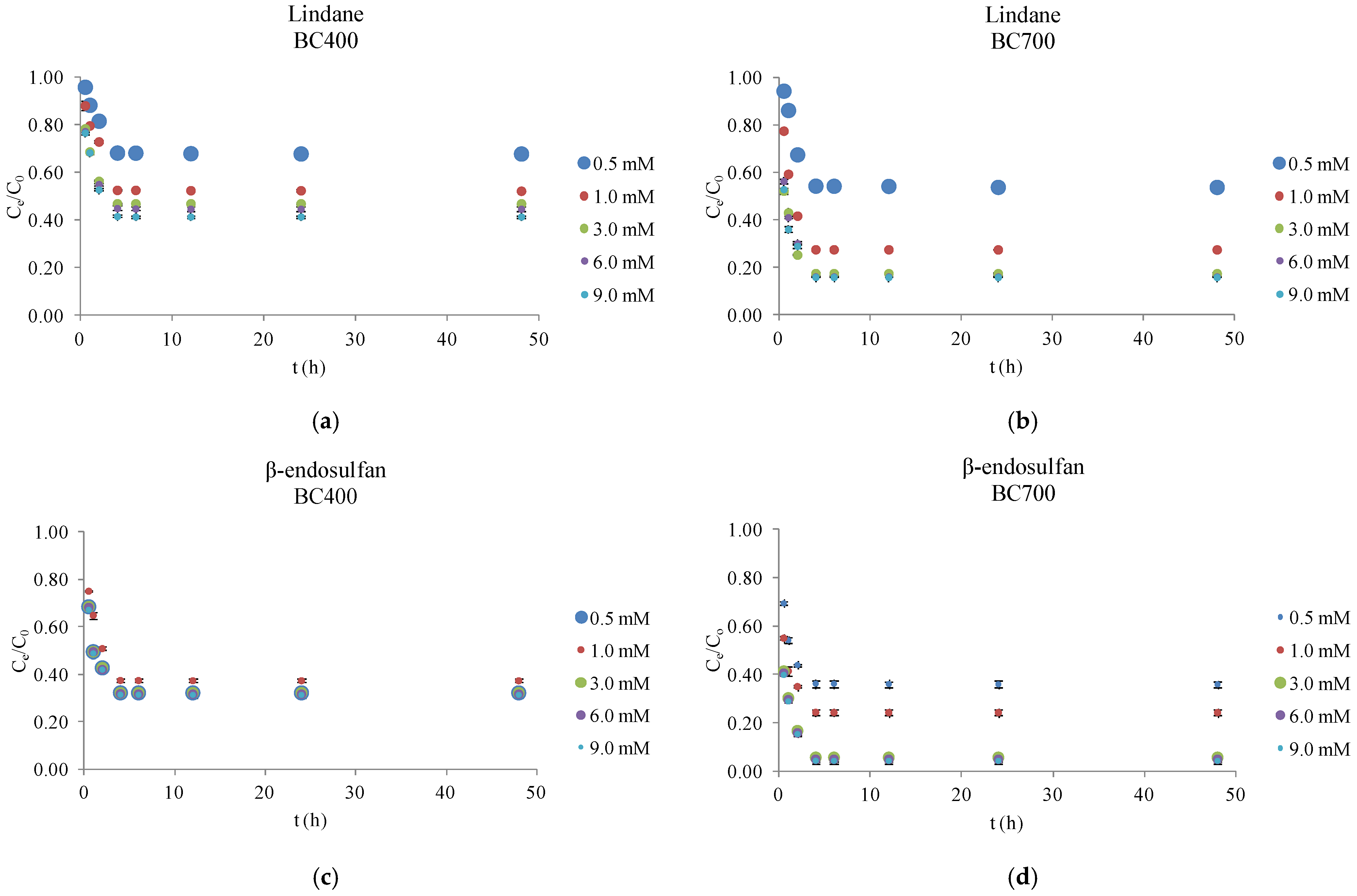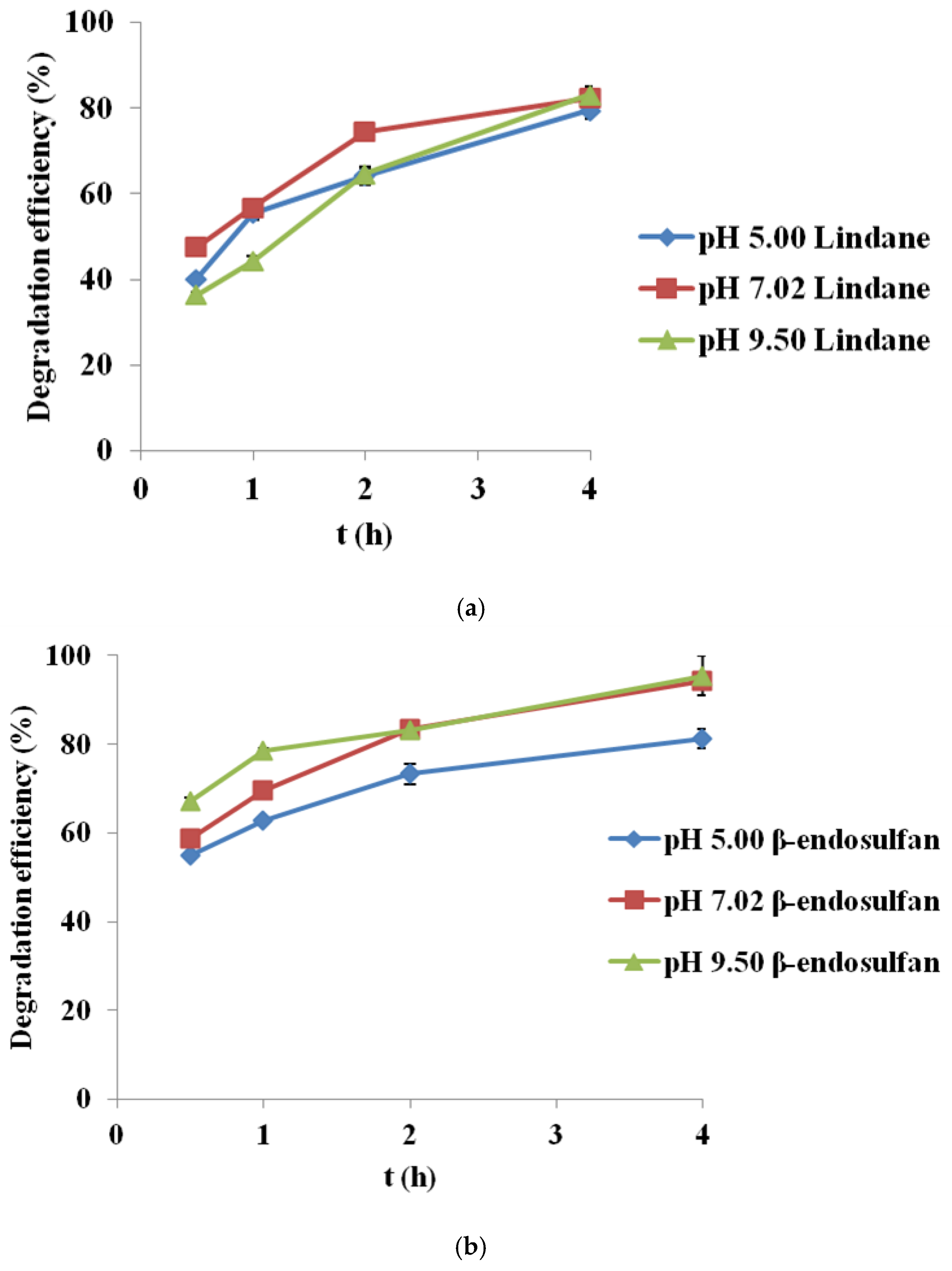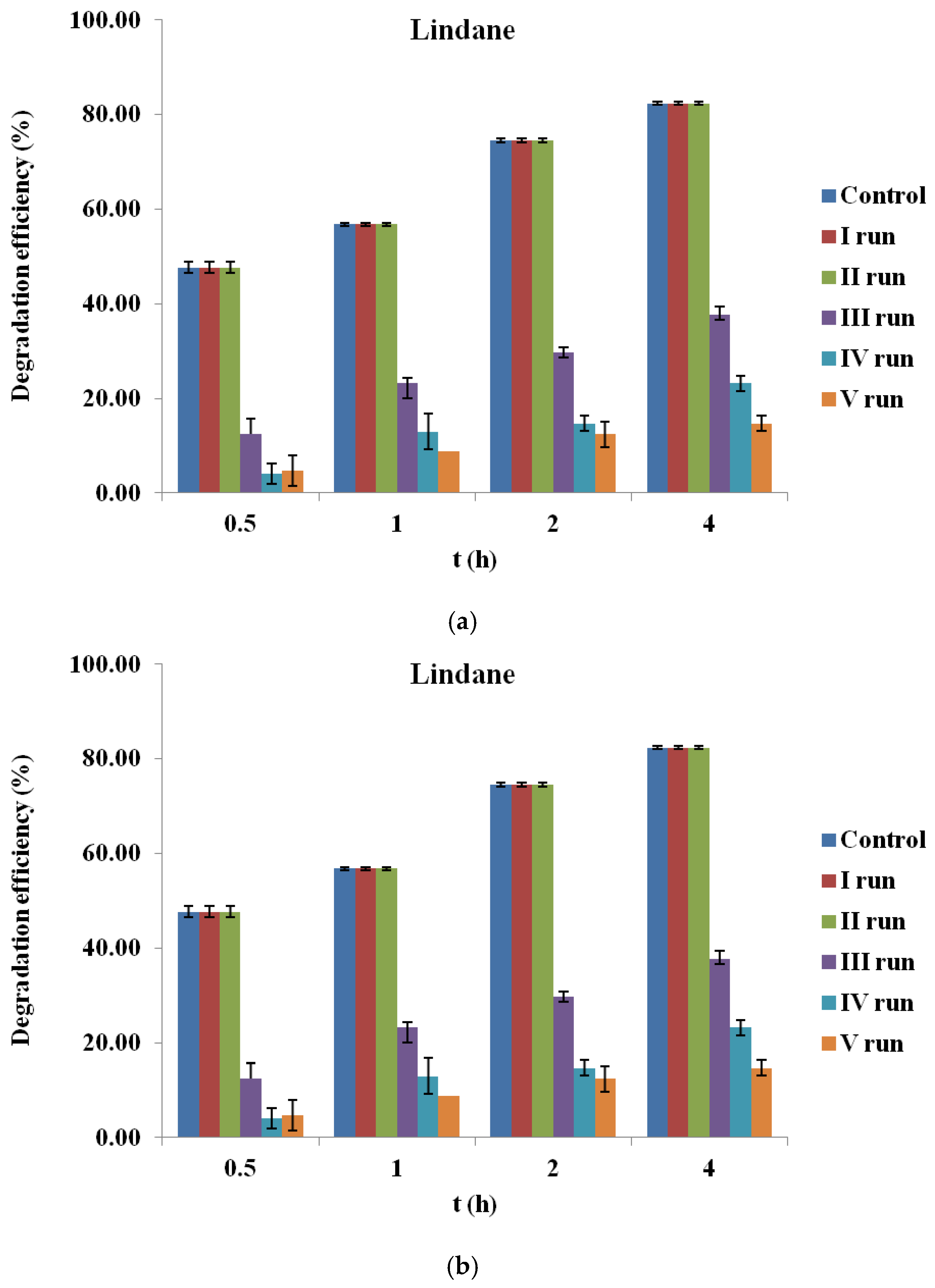 4.3. Optimization of Persulfate Concentration in the Biochar Catalyzed Degradation of Pesticides