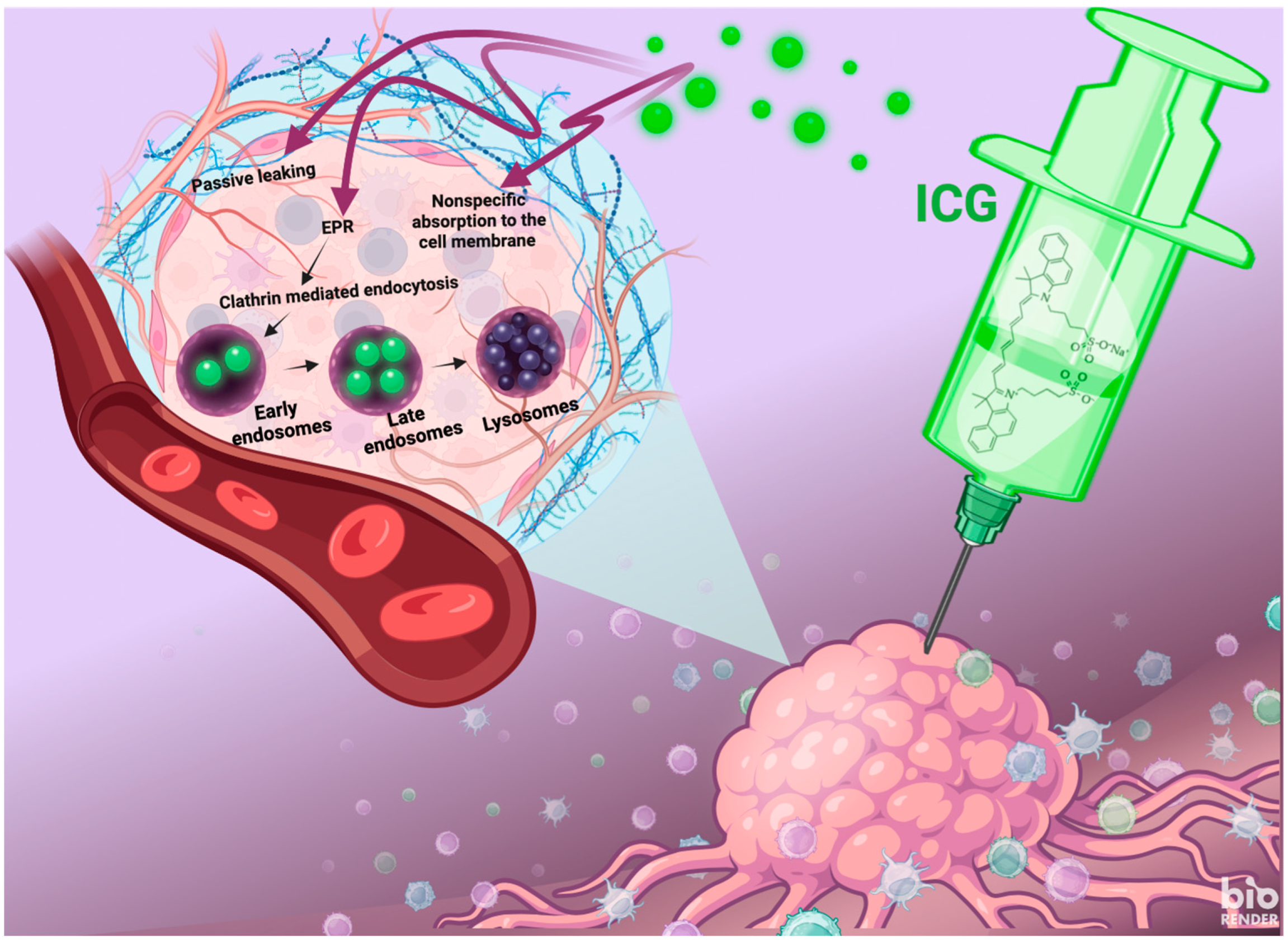 - Chan, C.D.; Brookes, M.J.; Pringle, T.A.; Pal, R.; Tanwani, R.; Burt, A.D.; Knight, J.C.; Kumar, A.T.; Rankin, K.S. Investigating the mechanisms of indocyanine green tumour uptake in sarcoma cell lines and ex vivo human tissue. J. Pathol. 2025, 267, 315–328. [Google Scholar] [CrossRef]
