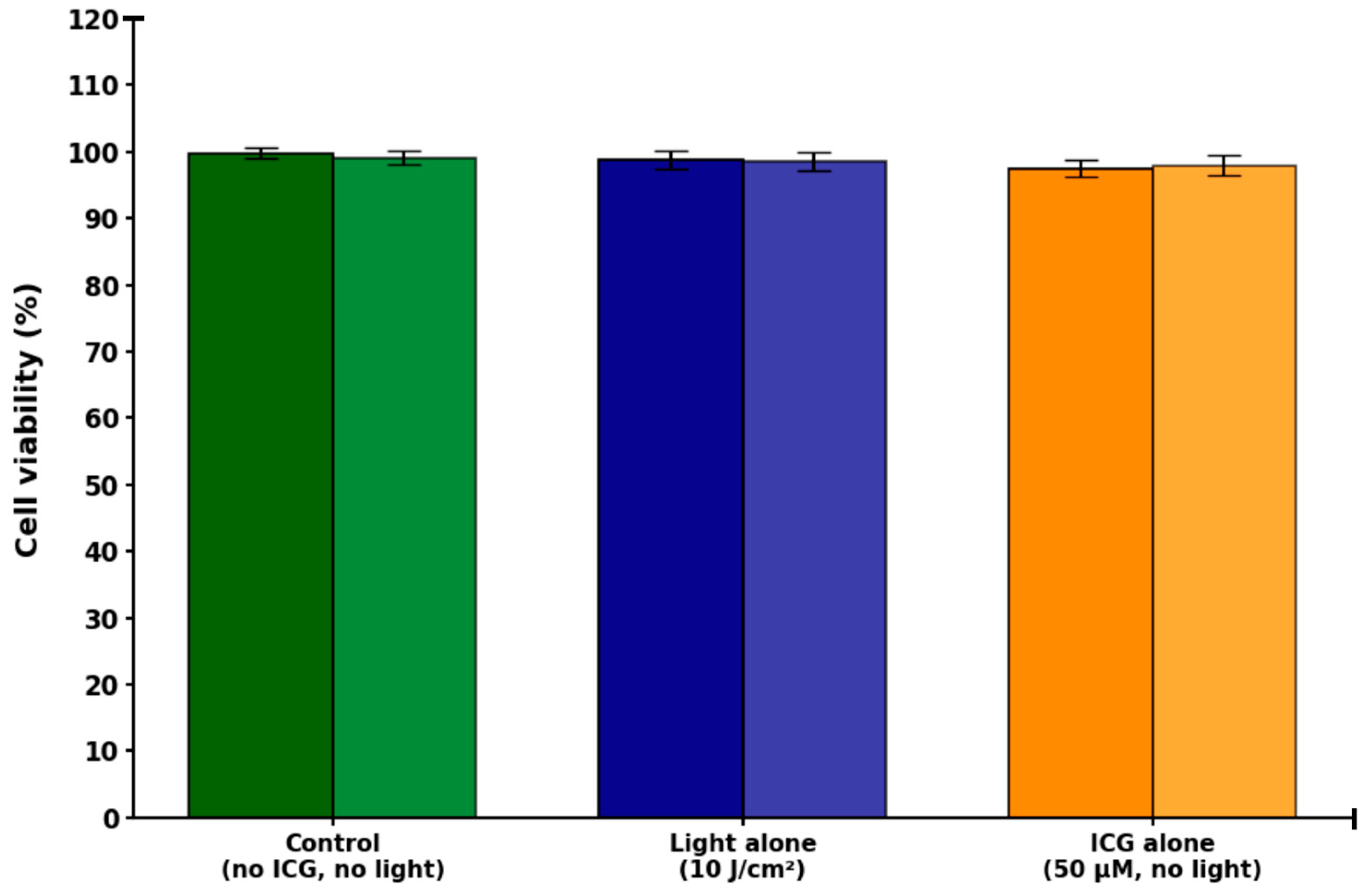 - Isil, T.; Ozlem, K.; Defne, B.H.; Eray, G.M.; Abdurrahim, K. Toxicity evaluation of indocyanine green mediated photodynamic therapy. Photodiagnosis Photodyn. Ther. 2023, 44, 103754. [Google Scholar] [CrossRef] [PubMed]